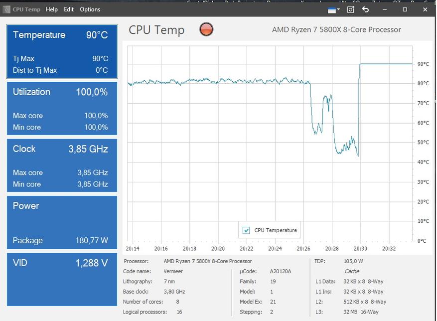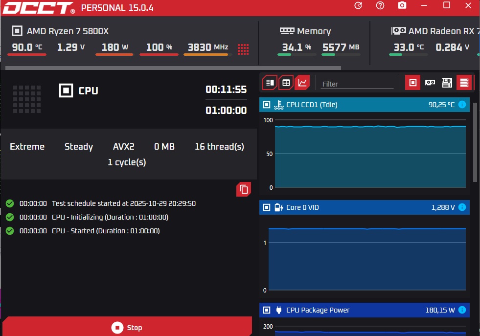 Утилита OCCT — 180 Вт — температура 90 градусов.