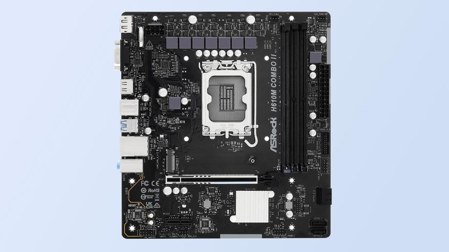 Компания ASRock выпустила материнскую плату H610M COMBO II, продолжающую серию гибридных решений для бюджетного сегмента. Главной особенностью новинки остается наличие слотов под разные типы оперативной памяти на базе чипсета Intel H610.
