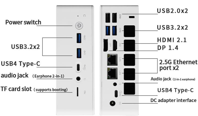 | Интерфейсы | 2х USB4, 4х USB3.2, AUX, MicroSD, 2x LAN, HDMI 2.1, DP 1.4, DC |