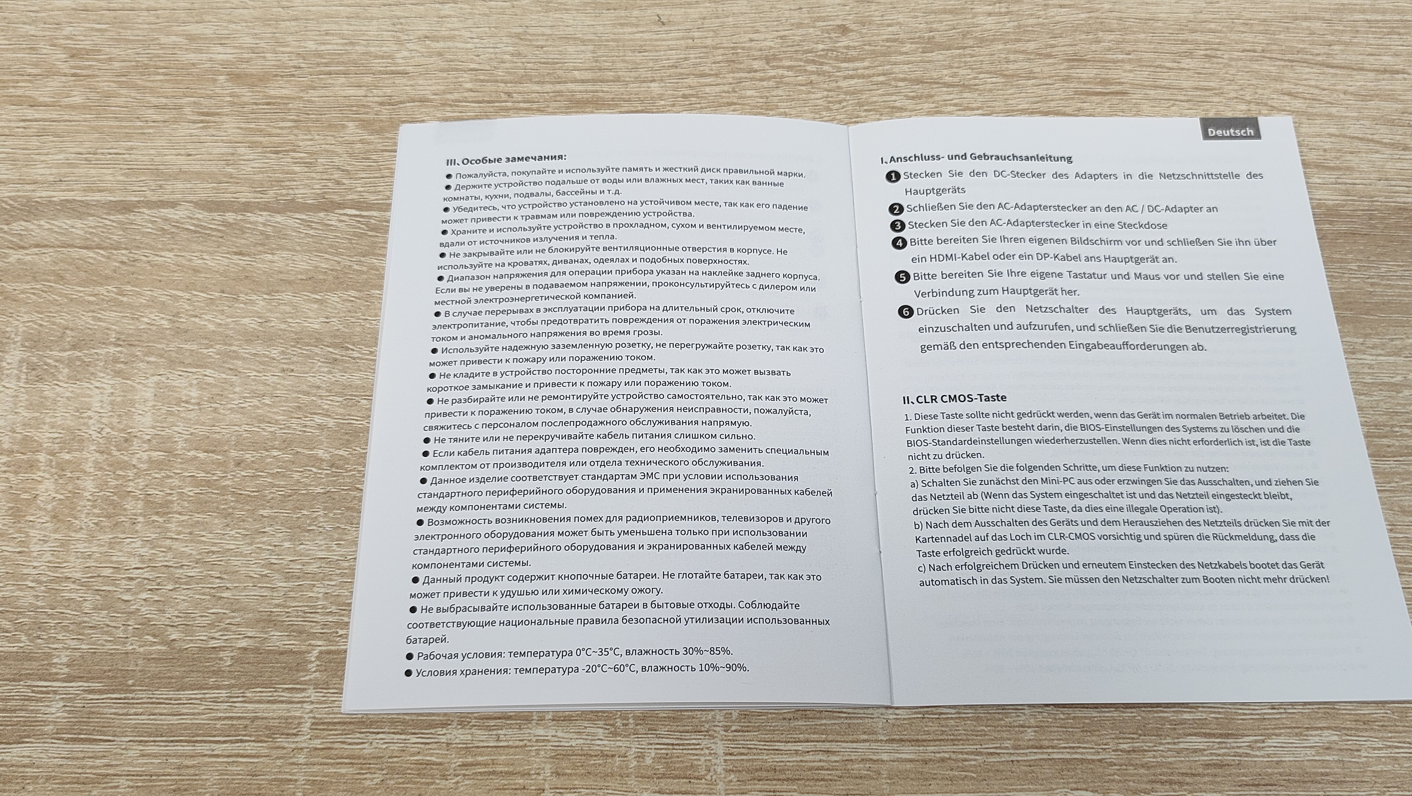 Гарантийный талон — он и в Африке гарантийный талон, а руководство пользователя настолько базовое, что точно такое же я видел в мини-ПК SOYO M4 Plus. Там находится совсем простая информация относящаяся почти к любому электронному устройству, а также, как сделать сброс.
