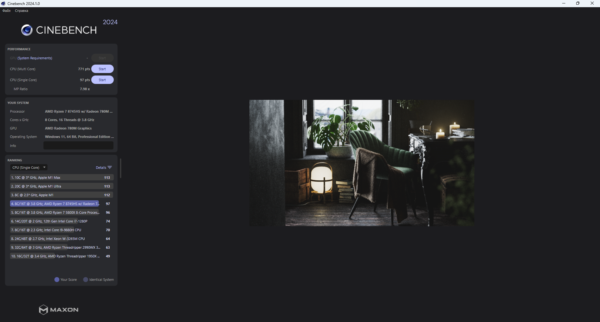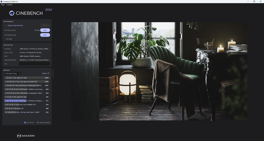 Производительность линеек 7040 и 8045 хорошо известна, эти камни получились очень удачные. Но как и в случае ноутбуков, а здесь именно по сути ноутбучное железо, всё решает реализация. Есть миники где данным процессором выделяют 60 Вт, в том числе, в долгой перспективе, а есть где их зажимают. Судя по производительности, здесь именно второй вариант, так как потенциал процессора такой, что он может показать результат на 20-50% больше, в зависимости от задачи. Пока не знаю кто виноват, так настроено потребление, или что-то с нагревом, или просто он выставлен в минимальное значение, попробую выяснить в ходе нагрузочных тестов, так как они всегда дают какие-то более понятные показатели, реальные и стабильные. Но несмотря ни на что, производительность данного процессора неплоха, но он может больше.