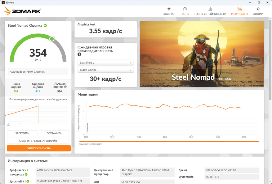 Что умеет Radeon 780M, мне хорошо знакомо, и в хорошей реализации, и в похуже, и в одном канале память была и с двумя, много видел. Поэтому, знаю, что эта графика может многое. В данном случае, она работает на частоте до 2600 МГц.