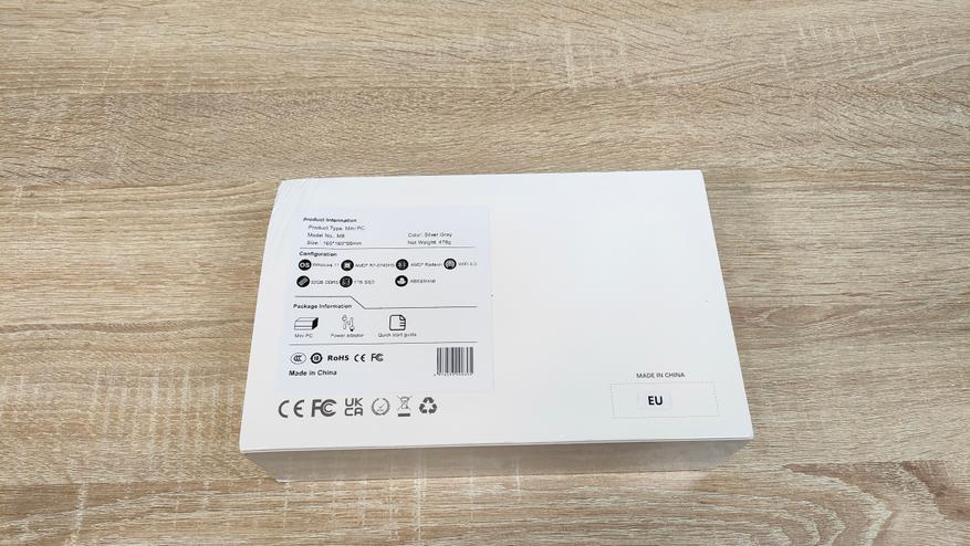 Из полезного — на обороте указание комплектации. Изображения самого миника нигде нет, в том числе схематичного. Комплект поставки следующий: мини-ПК, сетевой адаптер питания, HDMI-кабель, руководство пользователя, гарантийный талон.