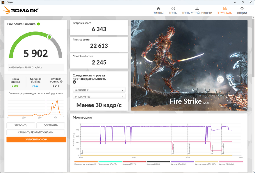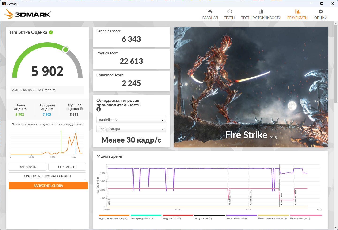 | Видеокарта | AMD Radeon 780M, 12 блоков, частота до 2600 МГц |