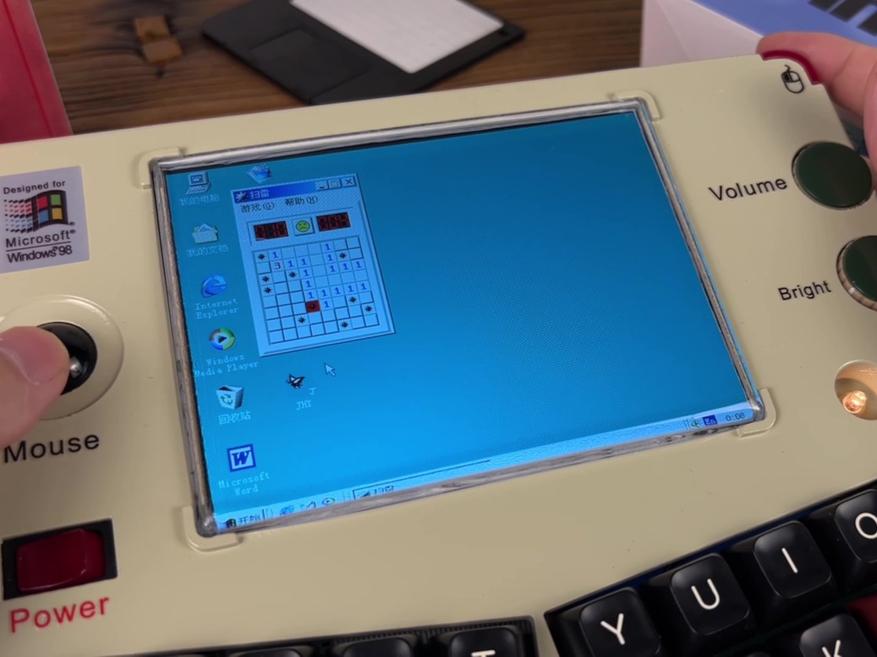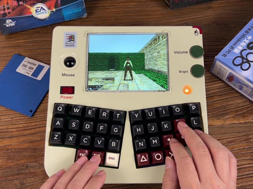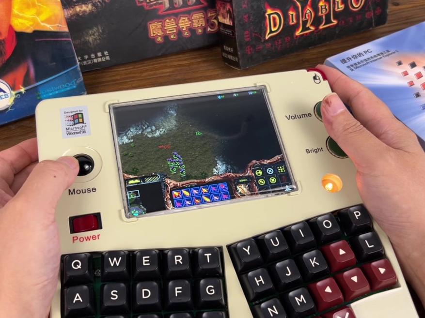 На компьютере установлена оригинальная операционная система Windows 98, работающая на аппаратном обеспечении своей эпохи. Устройство способно запускать классические игры 90-х годов, включая StarCraft, Tomb Raider II и Diablo II, без использования эмуляции.