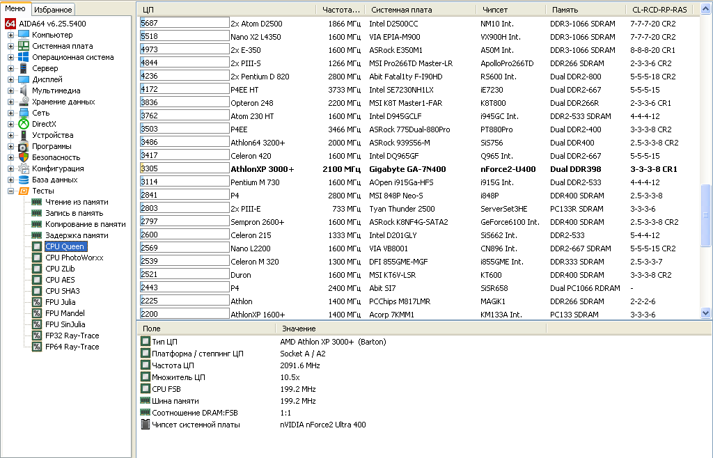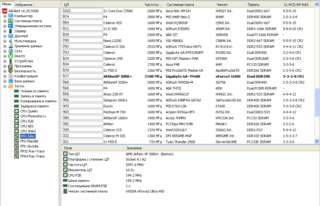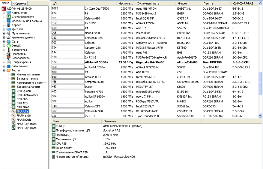 - Процессор Athlon XP 3000+ 400 FSB;