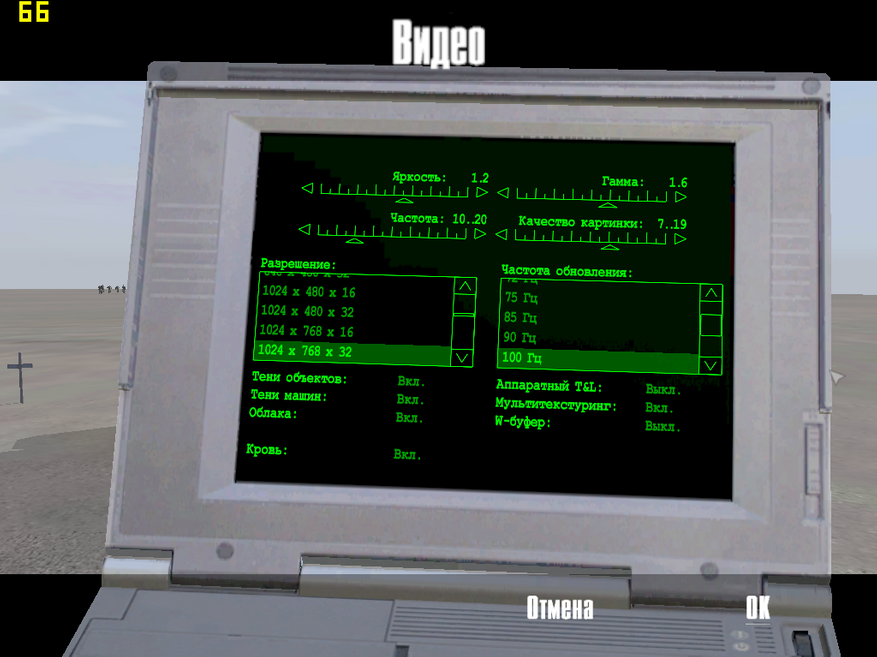 Все игры я запускал в разрешении 1024x768 32 bit, потому что именно его я бы выставлял в то время. Настройки графики подбирал для получения приемлемой плавности. В каких-то играх хватало и 30 FPS или даже меньше. В любом случае фреймрейт всегда сильно скачет в зависимости от локации и количества эффектов и теней в сцене. Может спокойно падать до 15-20 во время какого-нибудь взрыва, а потом резко прыгнуть до 70-80, например. Тогда так массово никто не заморачивался с мониторингом частоты кадров. От игры могло остановить только совсем уже слайд-шоу. Играли и в 10-15 FPS. Нет, естественно, никто это нормой не считал, но куда было деваться.