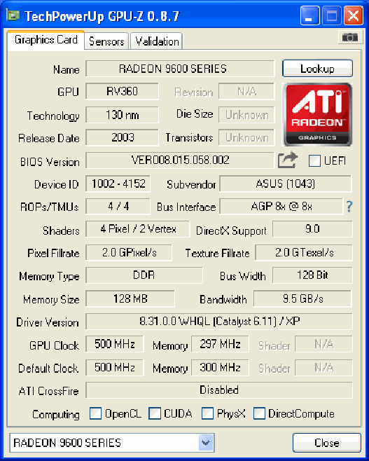 Так что 9600 XT на 128 mb в первую очередь и интересна тем, что являлась весьма рациональным решением по цене-производительности. Искать 9800 XT или 9800 PRO на барахолках не очень хочется, учитывая сколько за них просят. Нет, не сумасшедшие деньги, но отдавать за старый хлам 5-10 тысяч рублей (или даже больше) желания — нет. Почему-то всем вдруг коллективно в голову пришла мысль, что именно видеокарты для AGP имеют какую-то особую коллекционную ценность. Я ещё могу понять цены на ускорители 3dfx, ну или на просто редкие карты вроде FX 5800 Ultra. Я, естественно, никого не осуждаю за желание продать подороже, но приобретать старые железки, чтобы просто поковыряться — становится всё дороже и дороже. Это с учётом того, что всё это барахло имеет неиллюзорный шанс просто сдохнуть, или просто глючить и компостировать мозг. Я то хотел просто немного отвлечься и вспомнить былое, а тут вон оно как. Сиди и разбирайся почему драйвер на какое-нибудь устройство не ставится, или почему какая-нибудь игра тех лет работает без текстур.