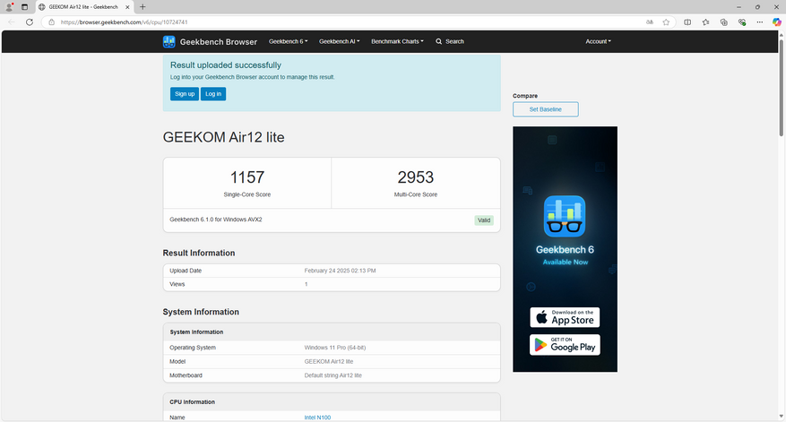 Синтетические тесты GEEKOM Mini Air12 Lite