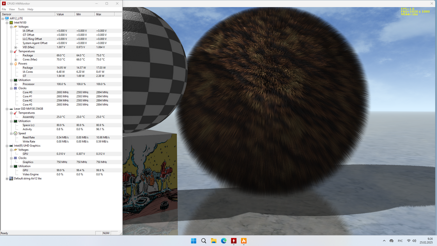 Во-первых, сразу видно что потребление данного процессора 15 Вт, что никак не подтверждается мнением большинства, что он более экономичный чем N95. Во-вторых, нагрев данного процессора находится в нормальных значениях, но выше, чем было у простой версии, хотя та потребляла столько же. В третьих, Lite версия более шумная, чем обычная, заметно более шумная. То есть нагрев и шум у Lite версии больше.