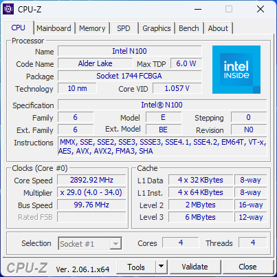 | Процессор | Intel N100: 4 ядра без HT на частоте до 3.4 ГГц,; TDP 6 Вт |