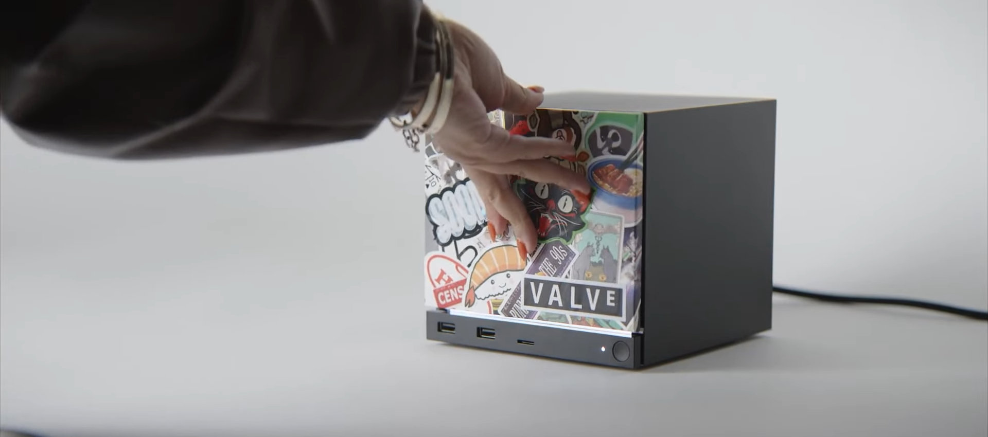 Новое устройство оснащено собственным блоком питания. Это редкое решение для компактных игровых ПК. За отвод тепла отвечает встроенная система охлаждения, рассчитанная на длительные игровые сессии, которую Valve описывает с привычной долей самоиронии: «тише травы и холоднее воды». Отдельное внимание уделено беспроводным возможностям — Wi-Fi 6E и Bluetooth 5.3, причем адаптер для Steam Controller встроен прямо в корпус. Контроллер можно использовать для включения ПК и пробуждения системы с дивана. Верхнюю грань корпуса пересекает светодиодная лента, которую можно настраивать, от индикации загрузки или скачивания игр до полностью персонализированных анимаций.