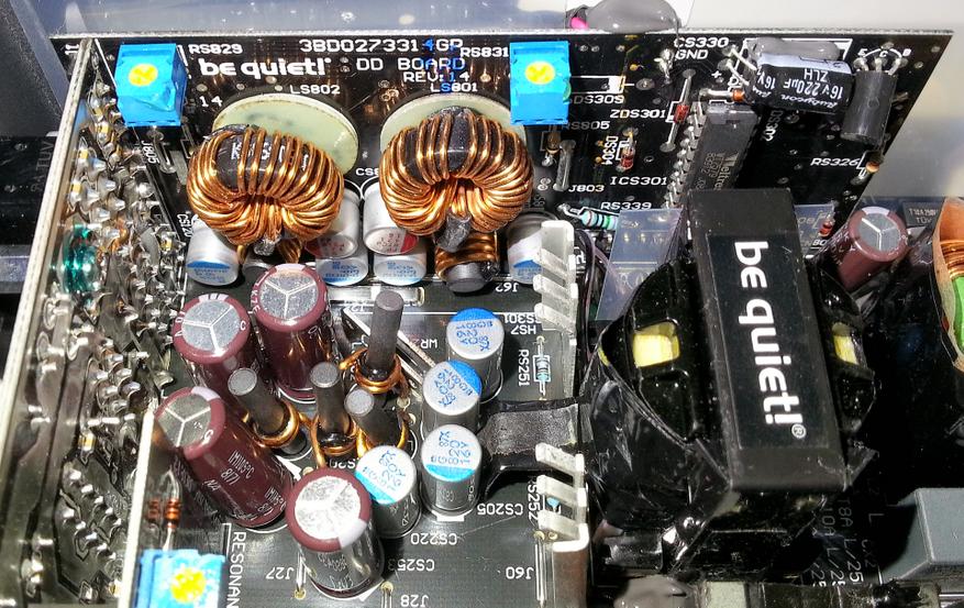 Стоит отметить, что у всей «младшей» линейки блоков питания (до 650W) Straight Power 11 схемотехника одинаковая и основана на топологии резонансного преобразования LLC, SR и DC-DC, поэтому обеспечивает высокую стабильность и точность регулировки напряжений. Отличаются блоки лишь по набору компонентов для обеспечения заявленной мощности.
