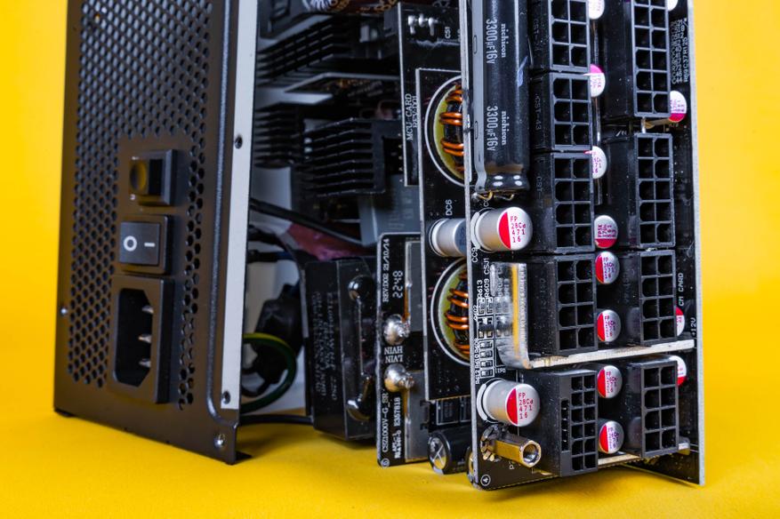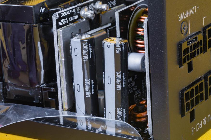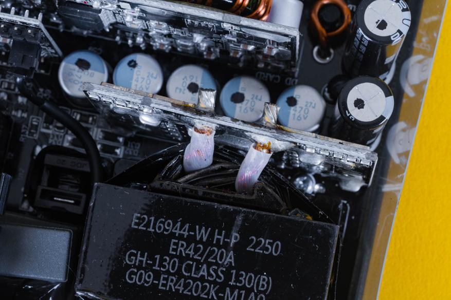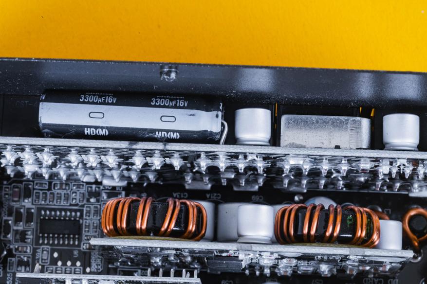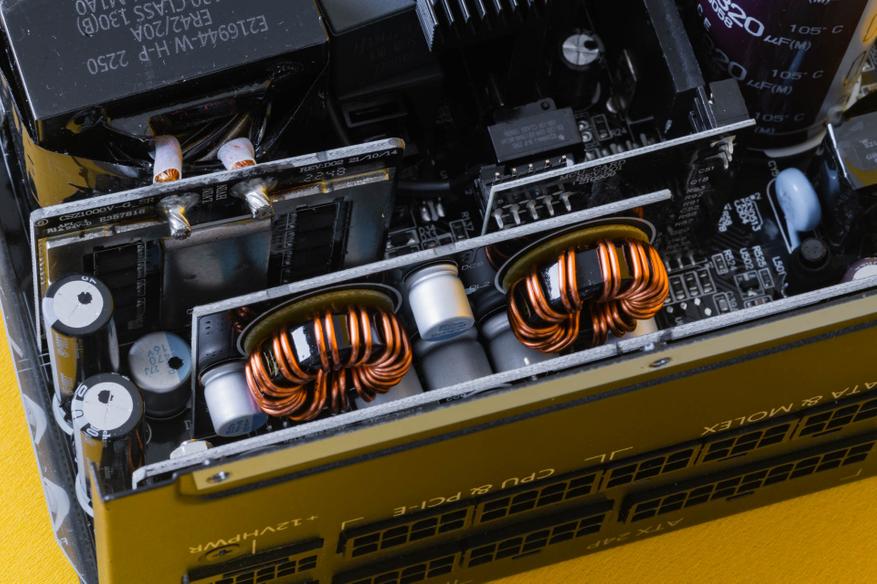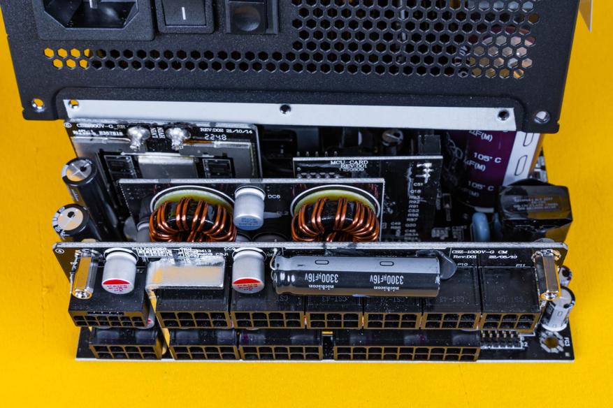На второй половинке корпуса блока питания находится основная начинка MPG A1000G PCIE5. Она базируется на OEM-платформе CSZ от компании CWT. Данная платформа не является уникальной и широко используется во многих моделях блоков питания, стандарта ATX 3.0.