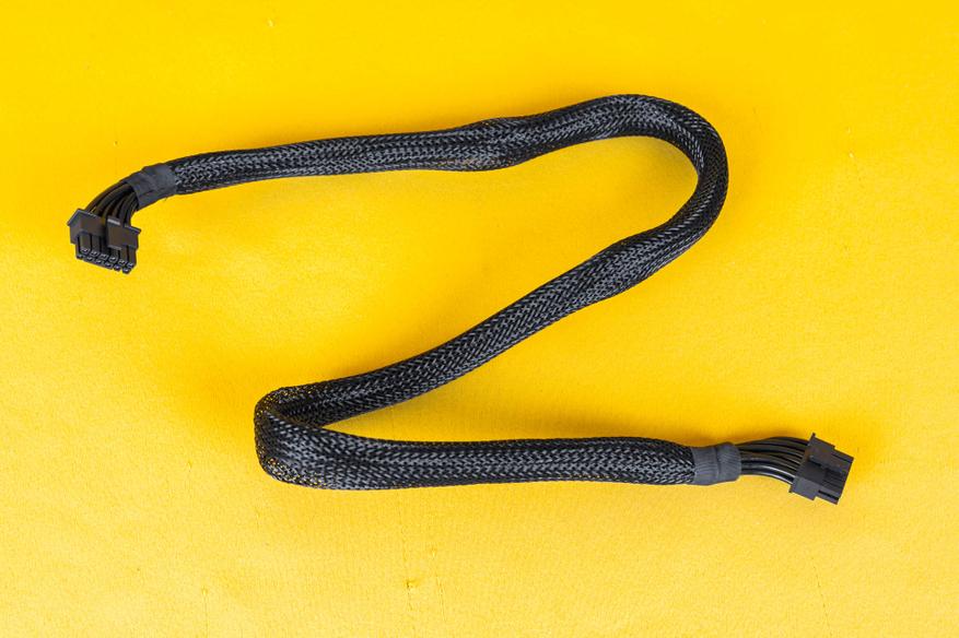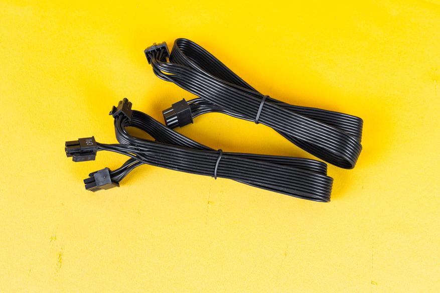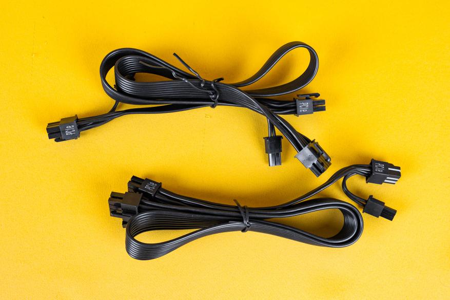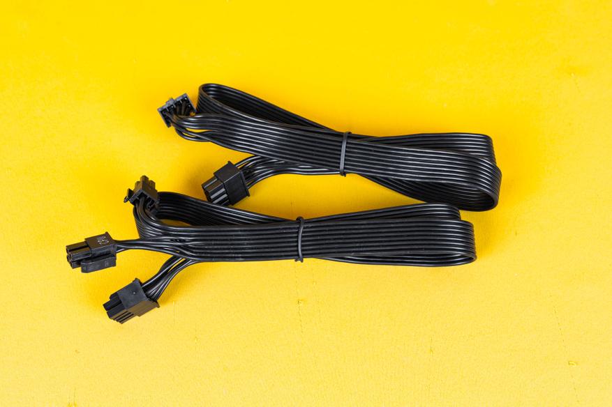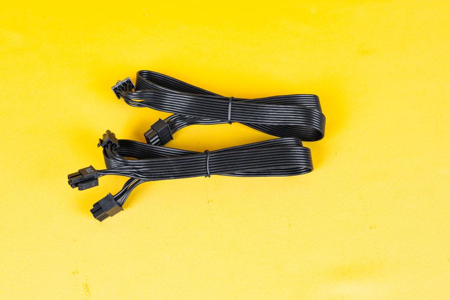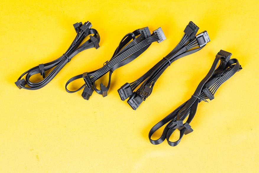 Все кабели выполнены в виде плоских лент черного цвета, за исключением двух кабелей с 16-контактным разъемом 12VHPWR, которые имеют черную оплетку.