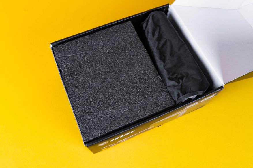Внутри коробки блок питания надёжно упакован в специальную мягкую пену. Это нужно, чтобы устройство не повредилось во время перевозки. Рядом с блоком питания, внутри коробки находится сумка для хранения модульных кабелей питания. Комплект поставки скромен, но включает все самое необходимое.