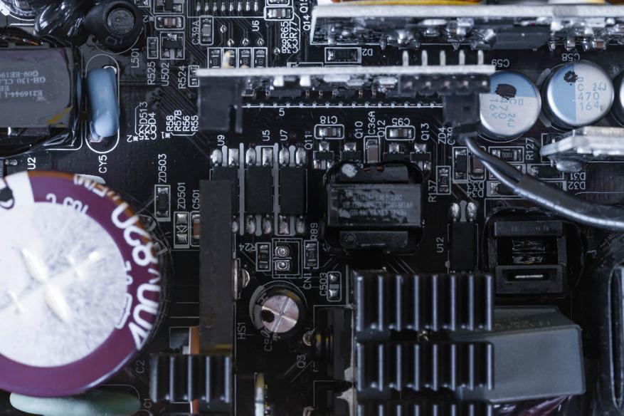 Среди ключевых особенностей устройства стоит выделить использование конденсатора Nichicon 400 В, 820 мкФ в первичной цепи. Во вторичной цепи применяются конденсаторы, аналогичные Nippon и Nichicon, которые считаются высококачественными компонентами.