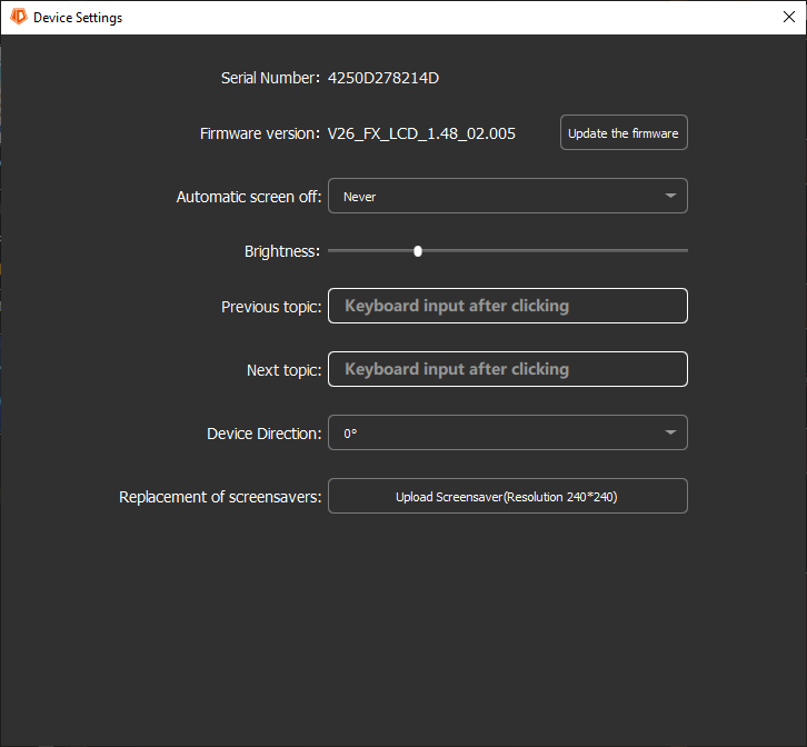 Если тут же (в средней секции) нажать на «Device setting», то откроется меню с небольшими настройками самой СЖО.