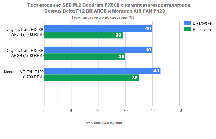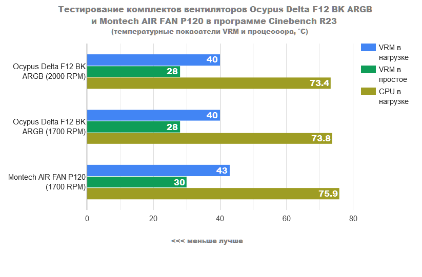 Как видите, то лавры победителя по праву перешли к комплекту вентиляторов Ocypus Delta F12 BK ARGB. Они действительно продемонстрировали мощный воздушный поток.