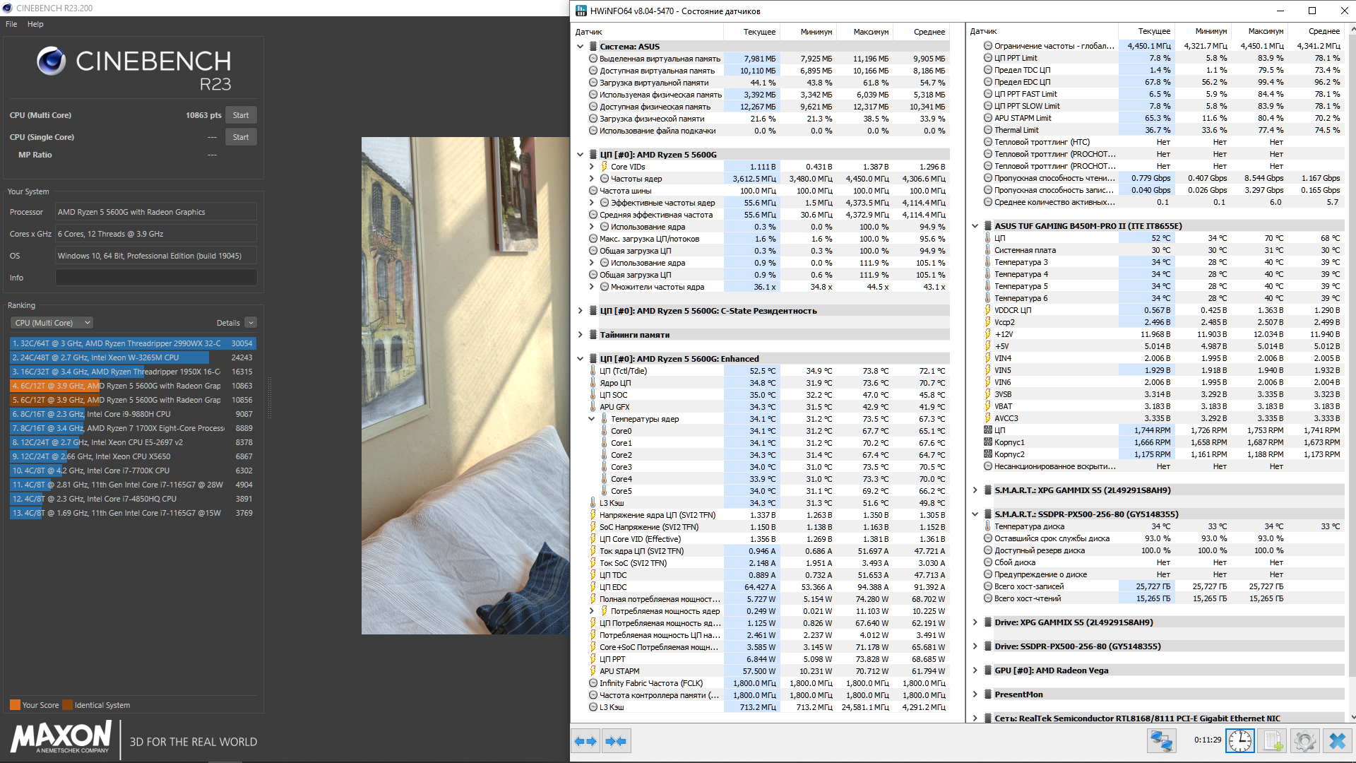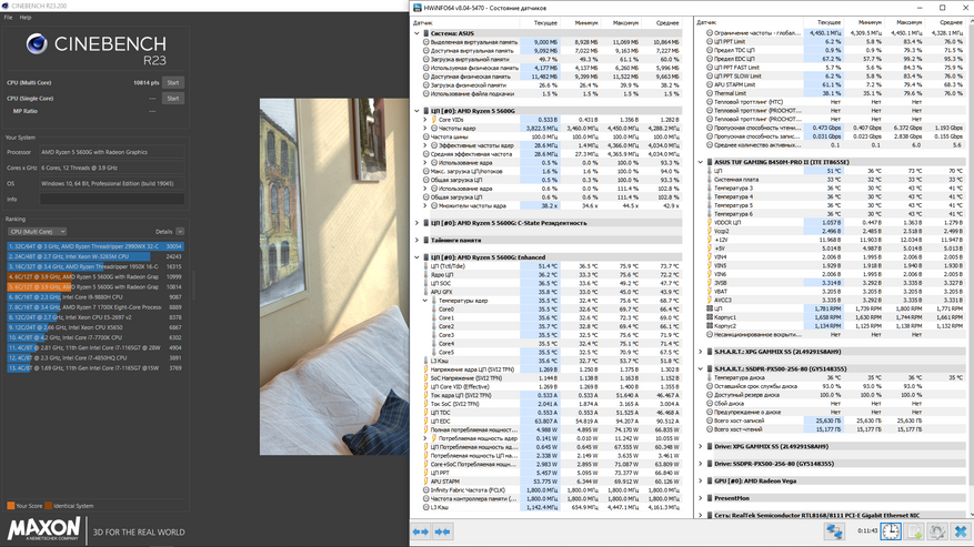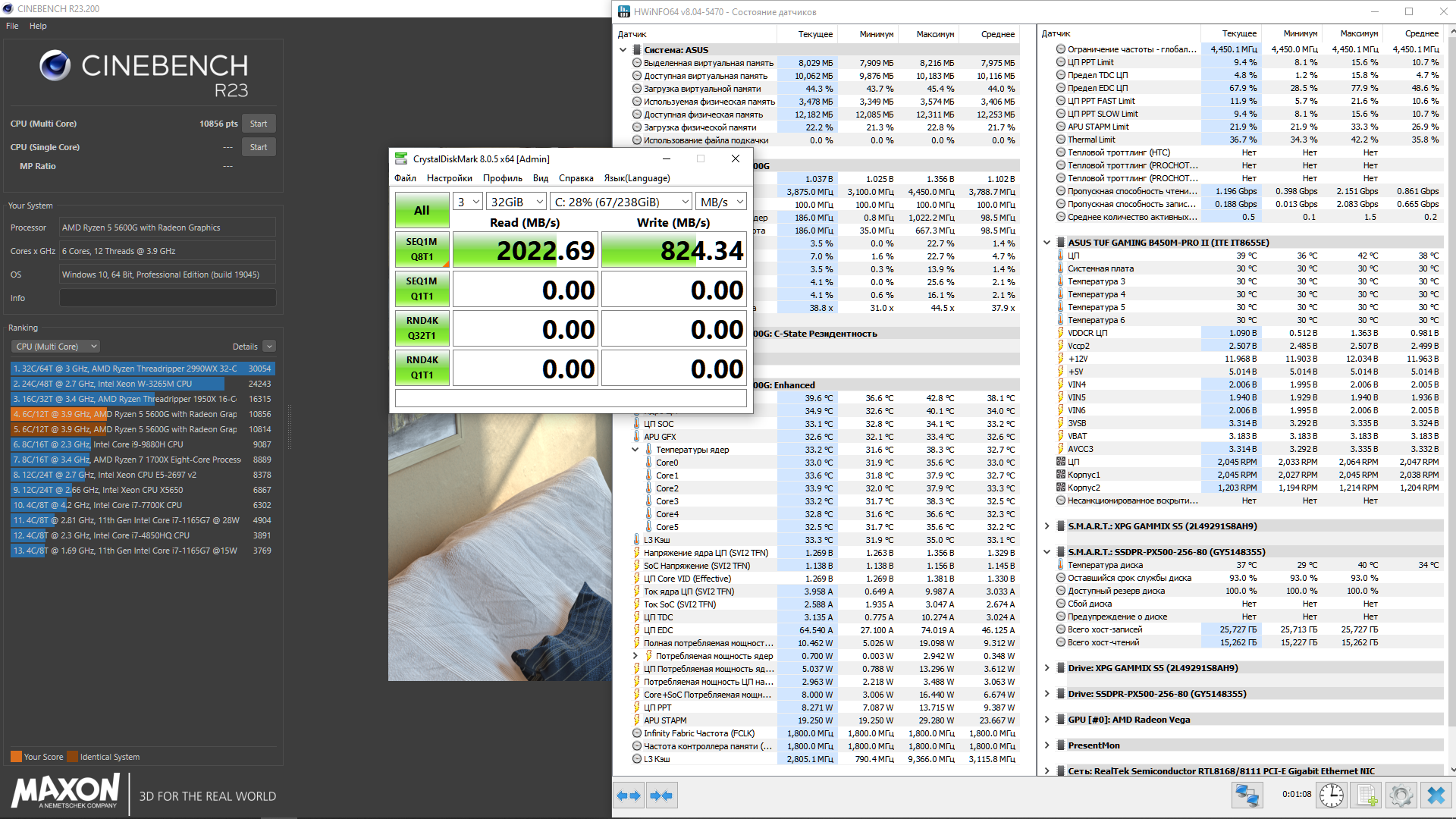 А нагрузочными программами стали Cinebench R23 и CrystalDiskMark. Сначала дам скриншоты результатов.