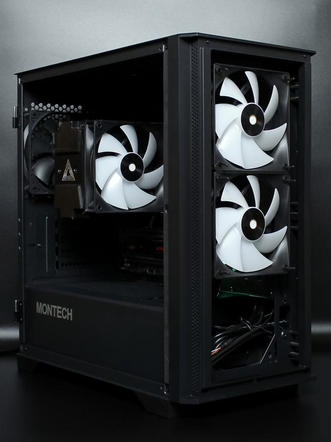 Для проведения корректного тестирования Ocypus Delta F12 BK ARGB были установлены в корпусе Montech AIR 100 LITE. Это было сделано взамен комплекта вентиляторов Montech AIR FAN P120 и штатной вертушки кулера Montech AIR COOLER 210.