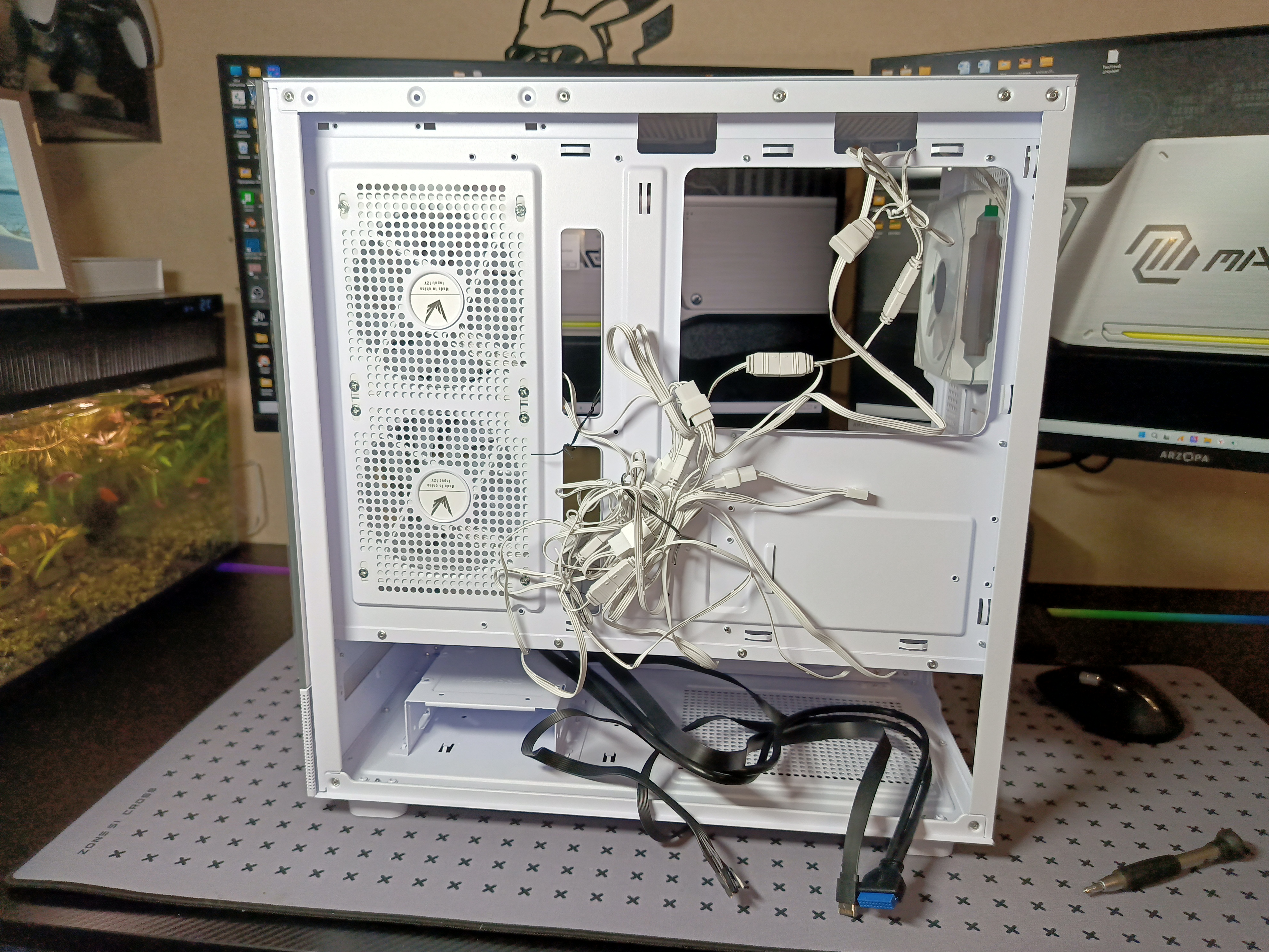 Большинство покупателей белых корпусов наоборот жалуются, что производитель не додумался сделать все провода белыми. А тут прямо угодили.