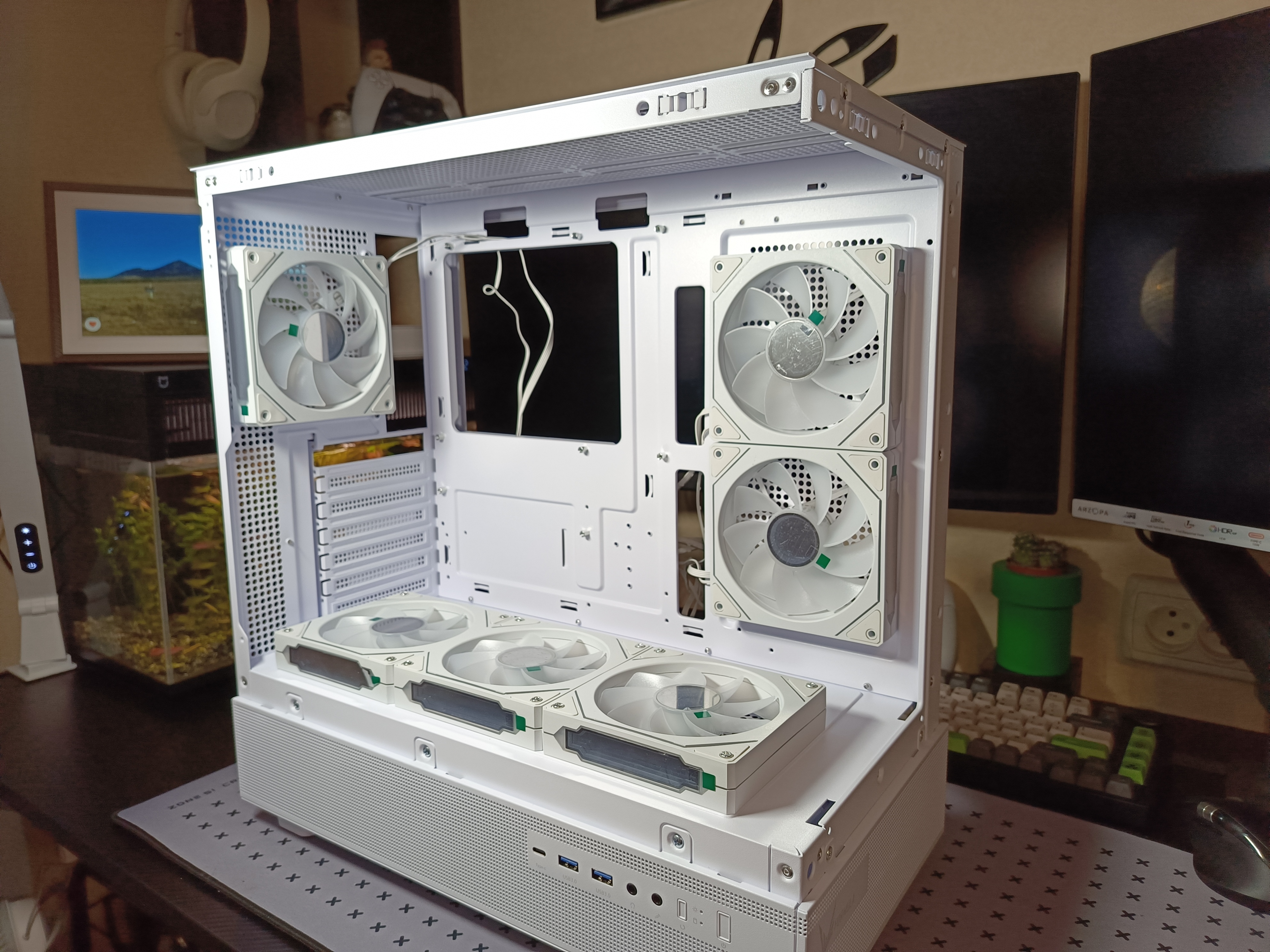- Отличную вентиляцию с шестью тихими вентиляторами из коробки;
