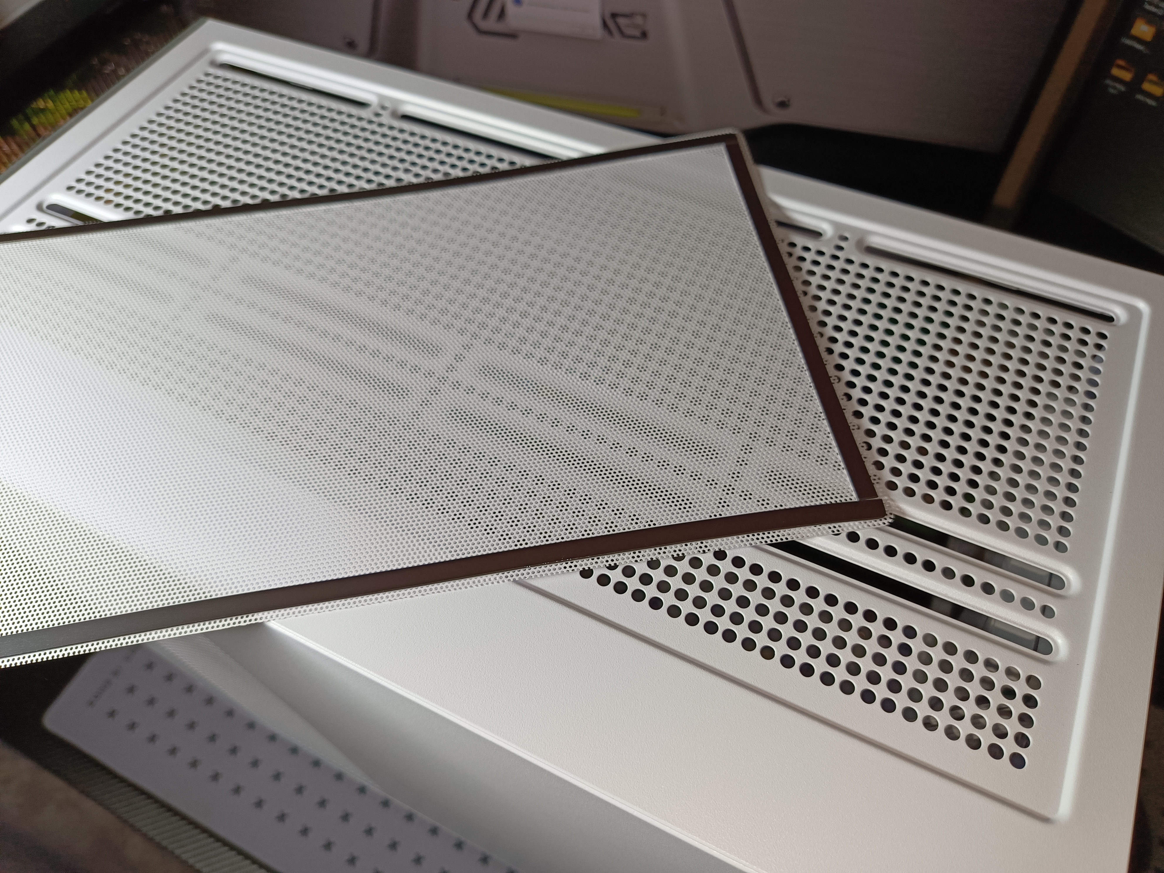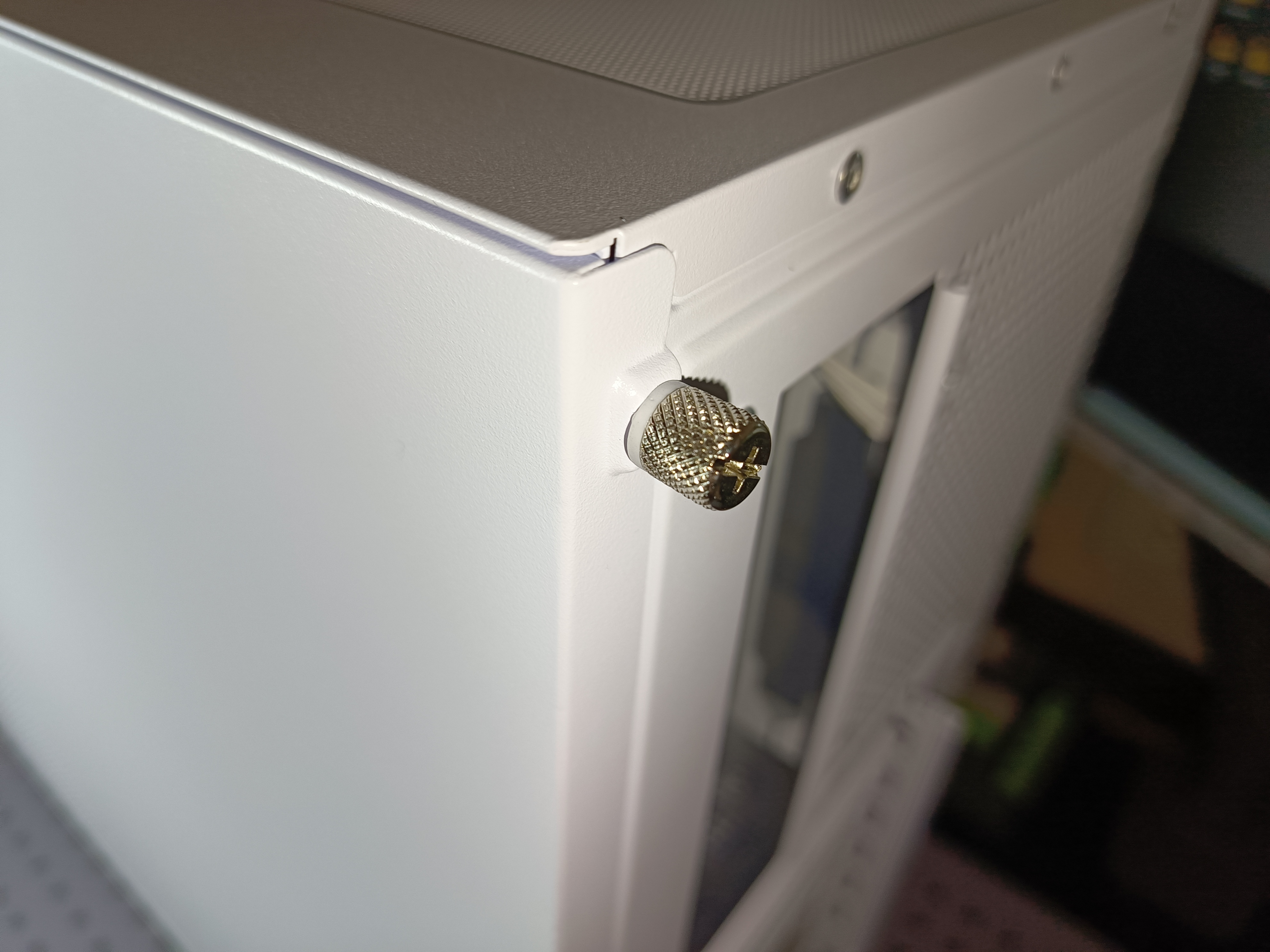 Задняя крышка снабжена перфорацией для улучшения вентиляции и оборудована магнитным пылевым фильтром. Всего предусмотрено три фильтра: на задней крышке, верхней панели и снизу корпуса — максимальная защита от пыли. Крышка фиксируется винтами с ограничителями, которые не выпадают при откручивании. Приятный бонус — резиновые уплотнители на винтах, улучшающие плотность и устраняющие вибрации.