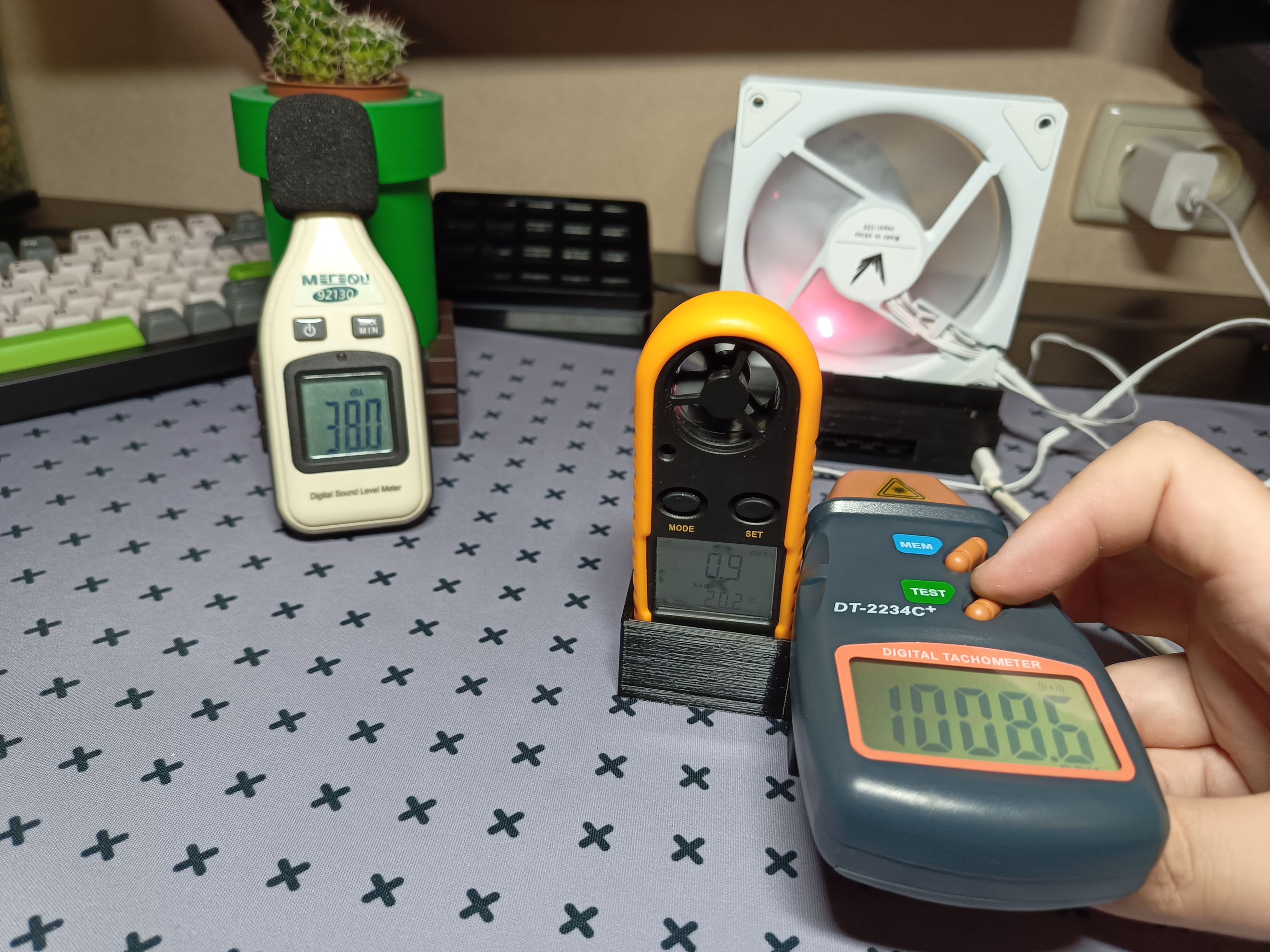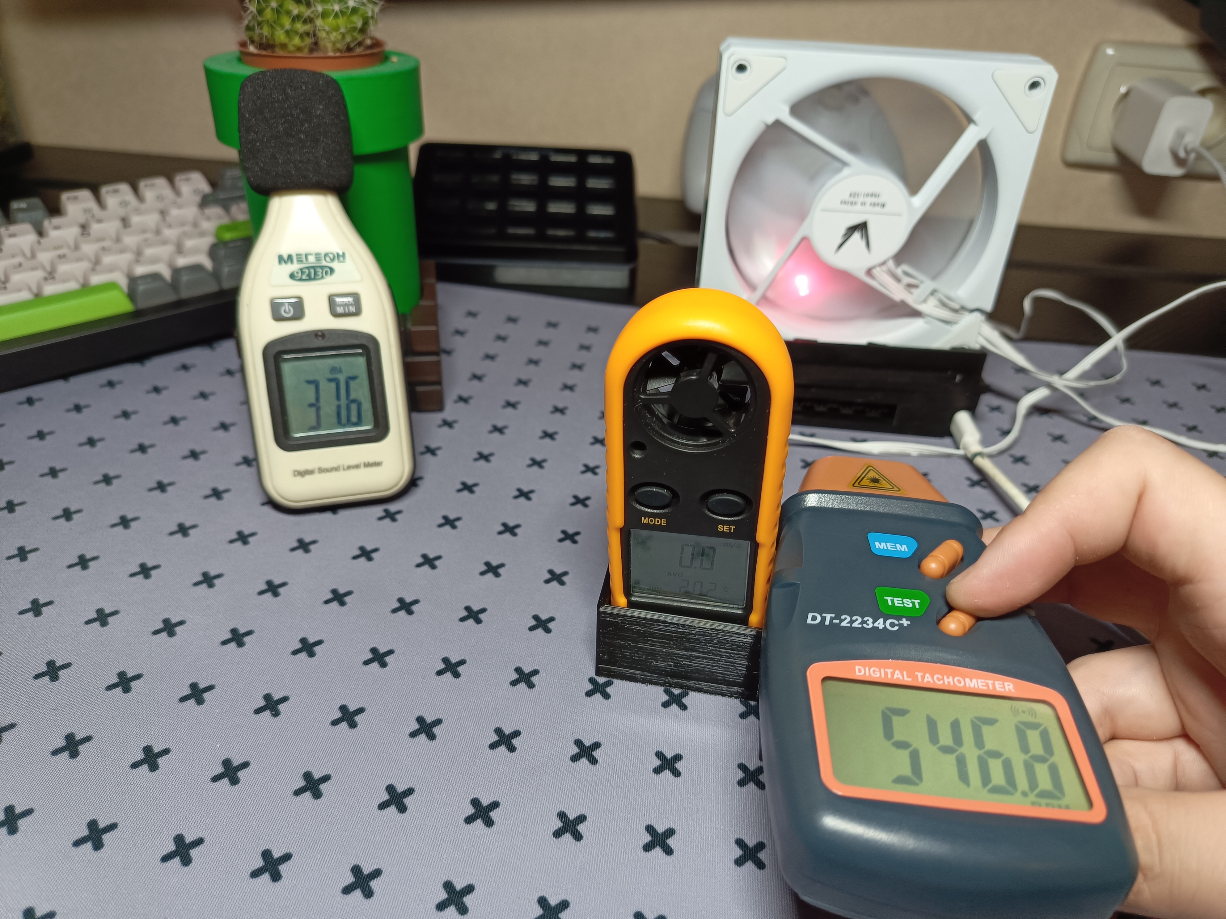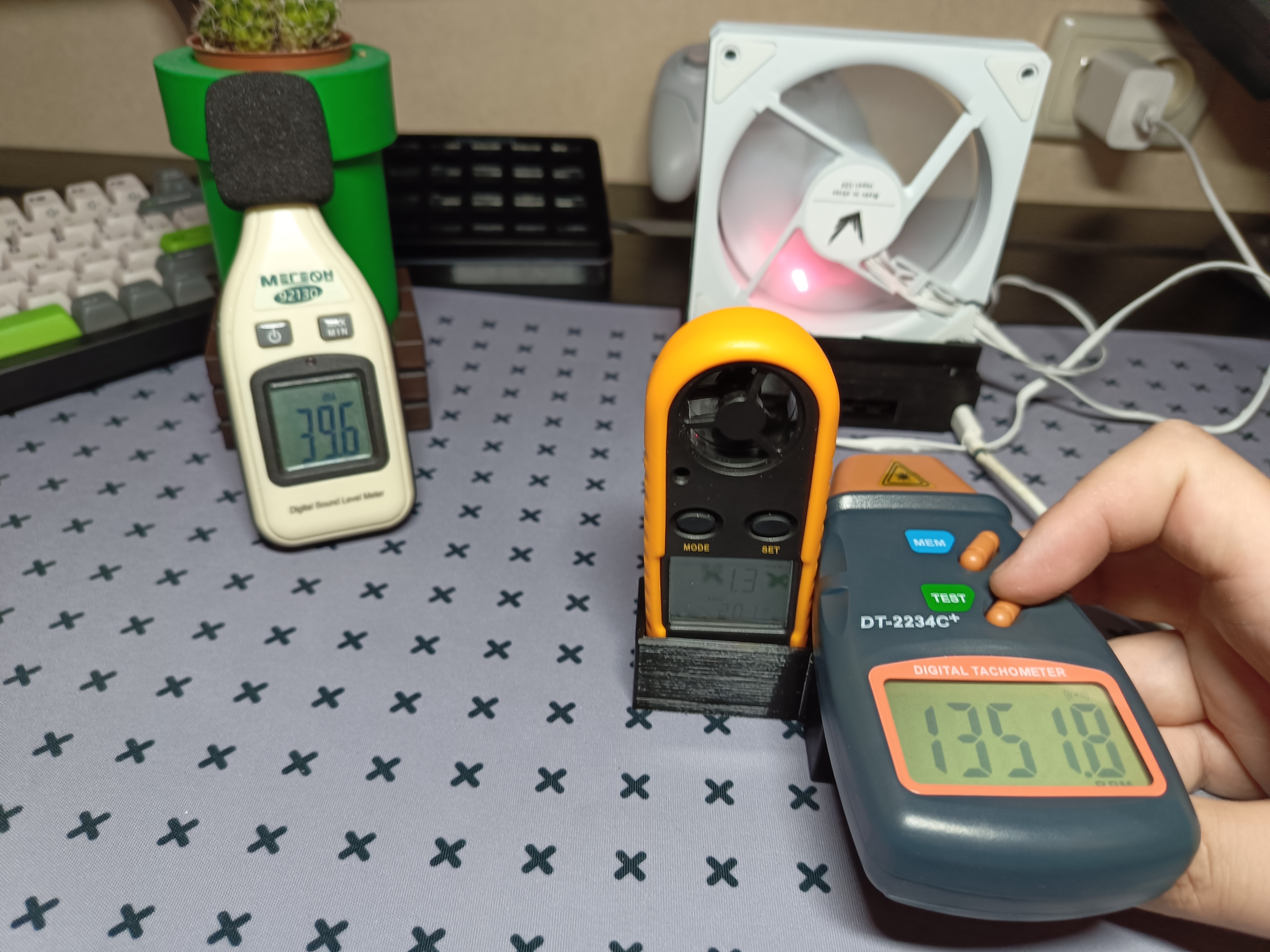 | Уровень шума, dBA | Обороты, RPM | Скорость воздушного потока, m/s | |
