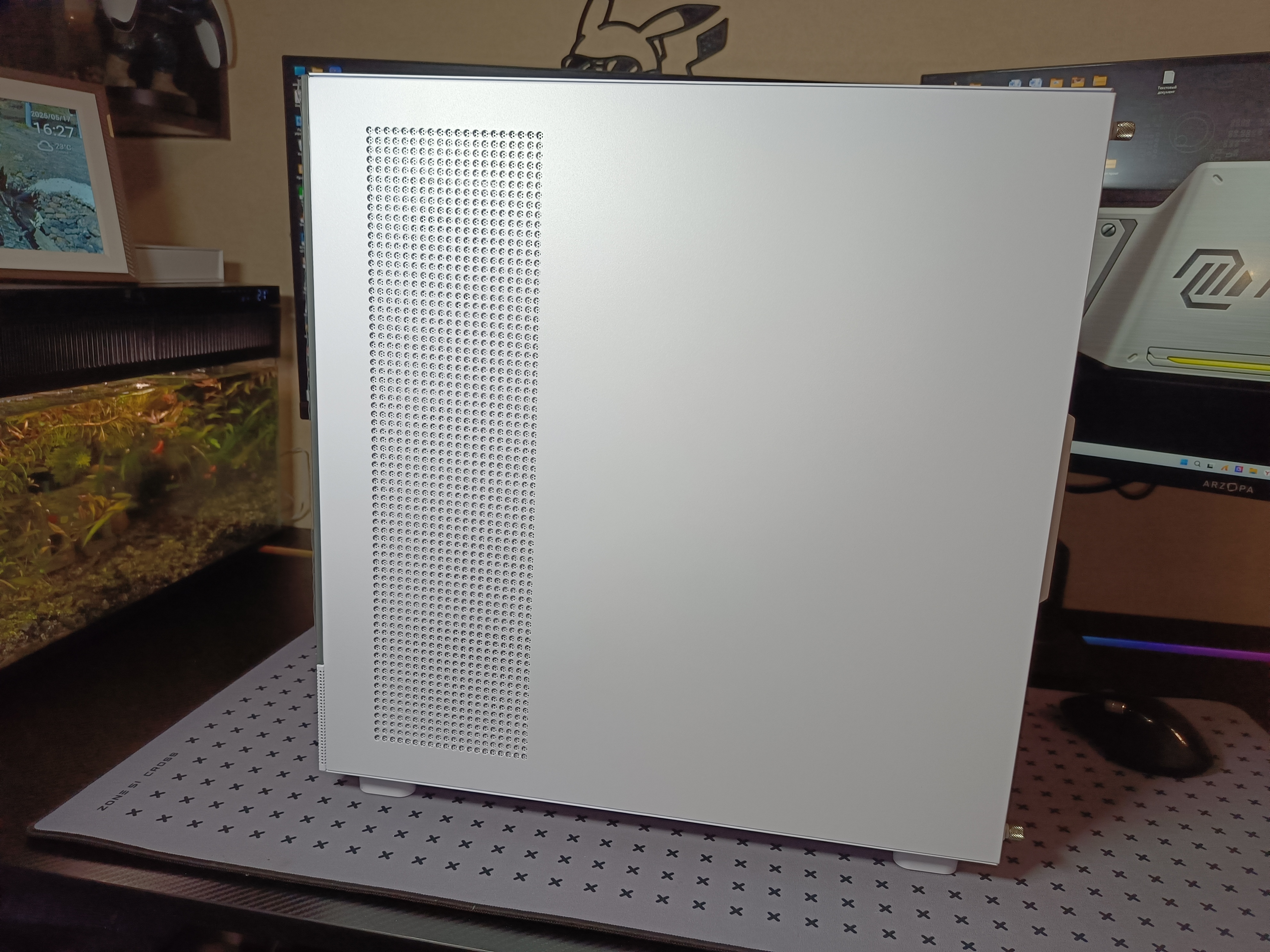 Корпус выполнен в так называемом «аквариумном» дизайне, который сейчас особенно популярен среди геймеров и энтузиастов. Толщина металла варьируется: в среднем 1,3 мм, с участками в 1 мм и 1,5 мм. Конструкция ощущается монолитной, не хлипкой — вес корпуса составляет около 7 кг.