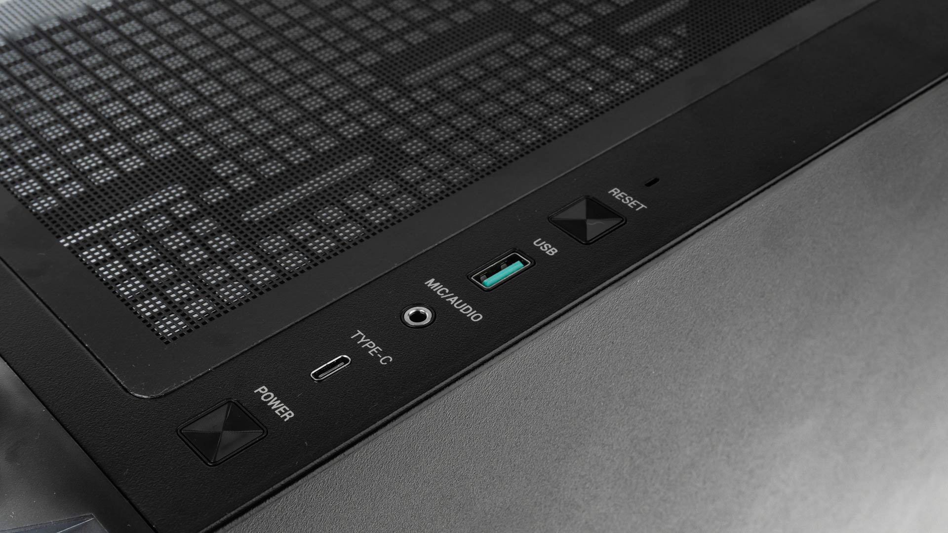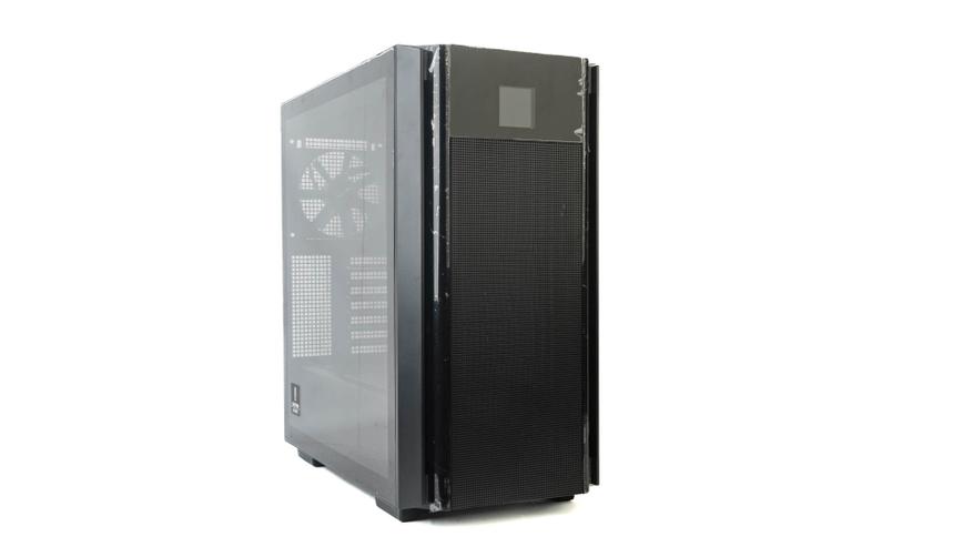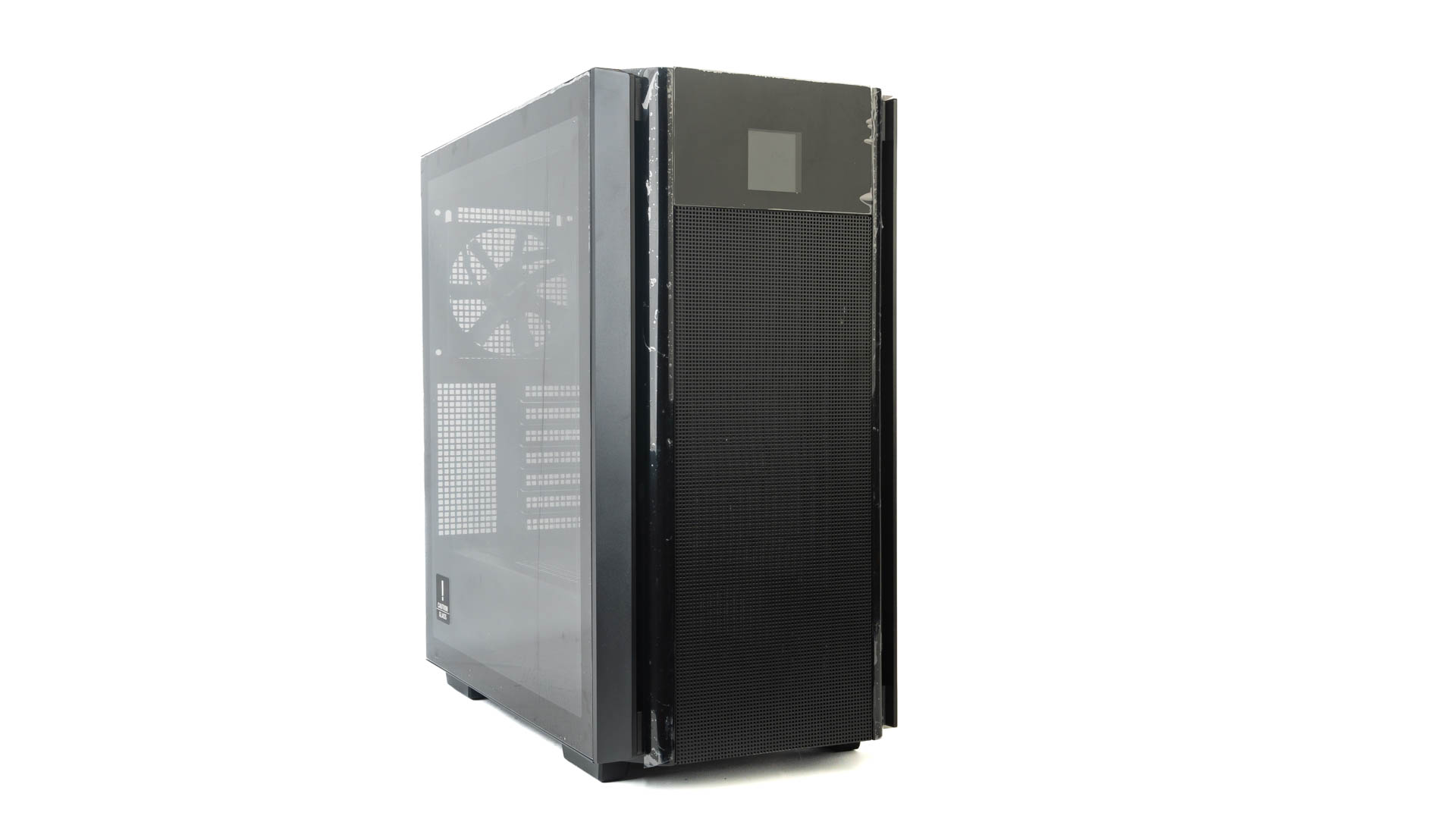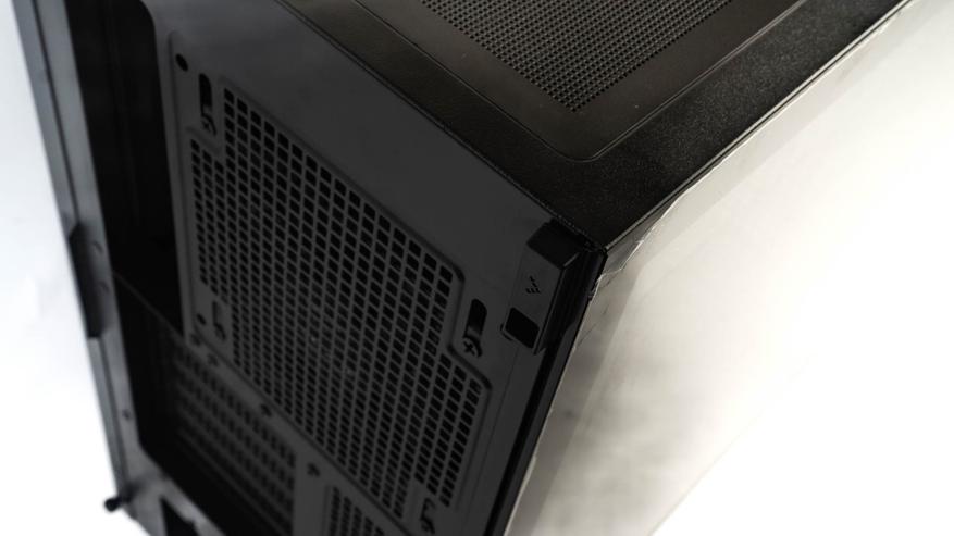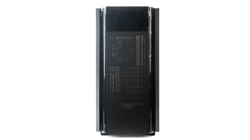 Передняя панель корпуса разделена на две части, одна из них - продуваемая металлическая решётка, характерная для mesh корпусов. Сверху лицевой панели расположена вставка с небольшим дисплеем для вывода показателей температуры. По бокам данной панели так же находятся дополнительные отверстия для забора воздуха.