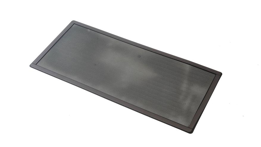 Всю остальную часть занимает продуваемая зона для вывода горячих потоков воздуха, накрытая пылевым фильтром. Пылевой фильтр крепиться к раме корпуса с помощью магнитных лент приклеенных к пылевому фильтру.
