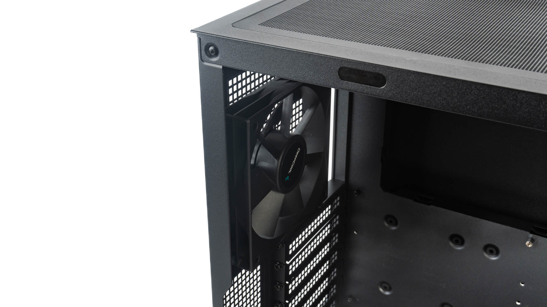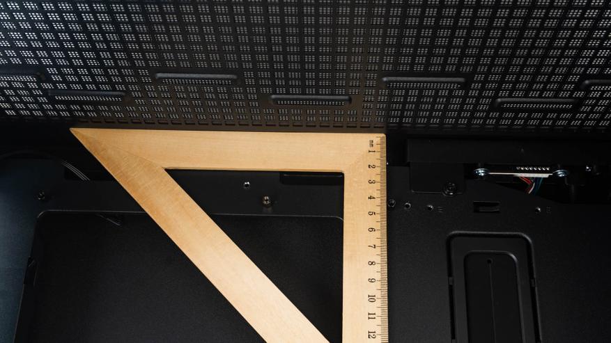 Место от верхней части корпуса до материнской платы составляет 45 мм, в это пространство можно поставить три вентилятора размером в 120 мм, либо два вентилятора, размером 140 мм, а также системы водяного охлаждения, длинной вплоть до 360 мм.