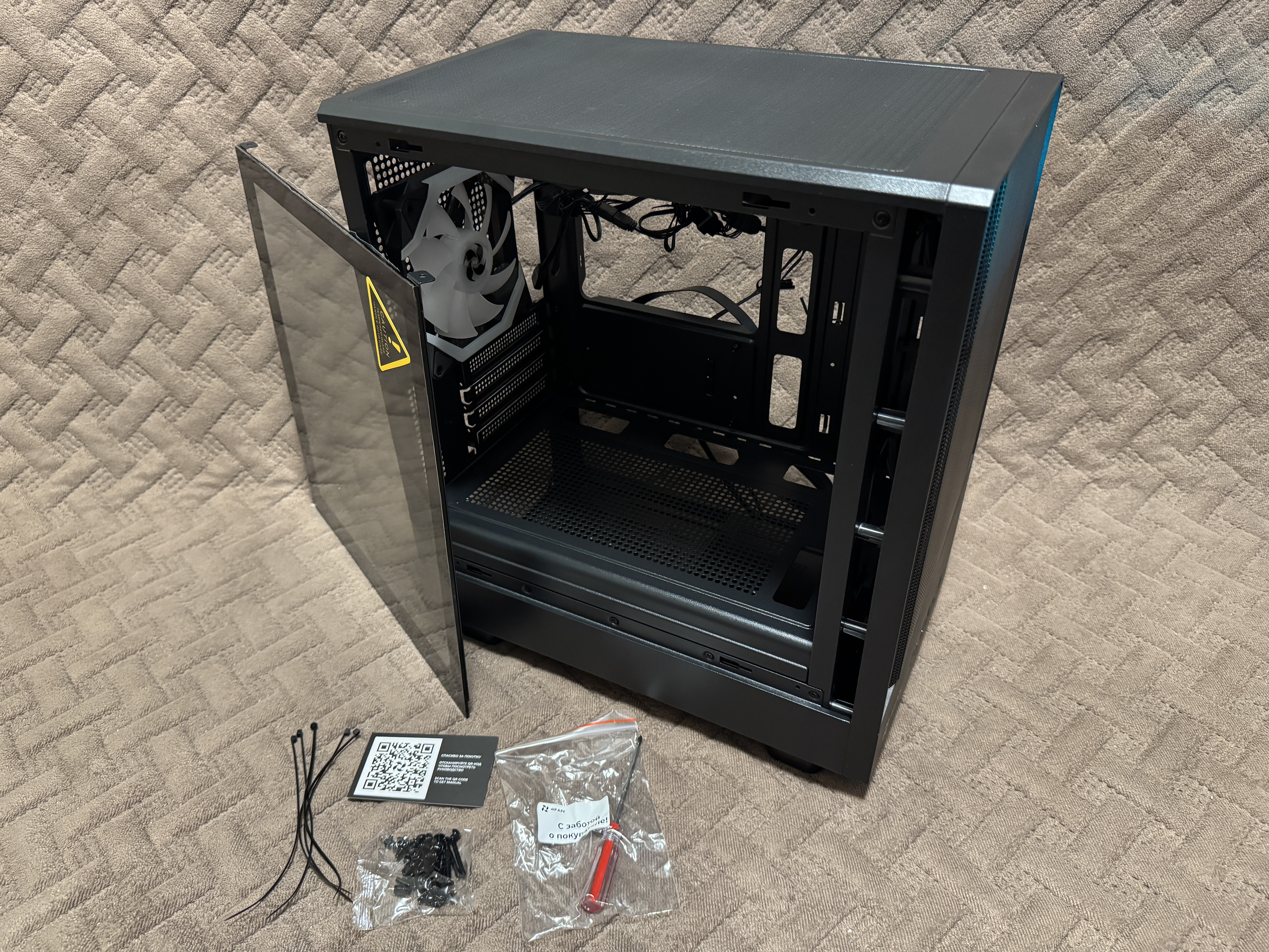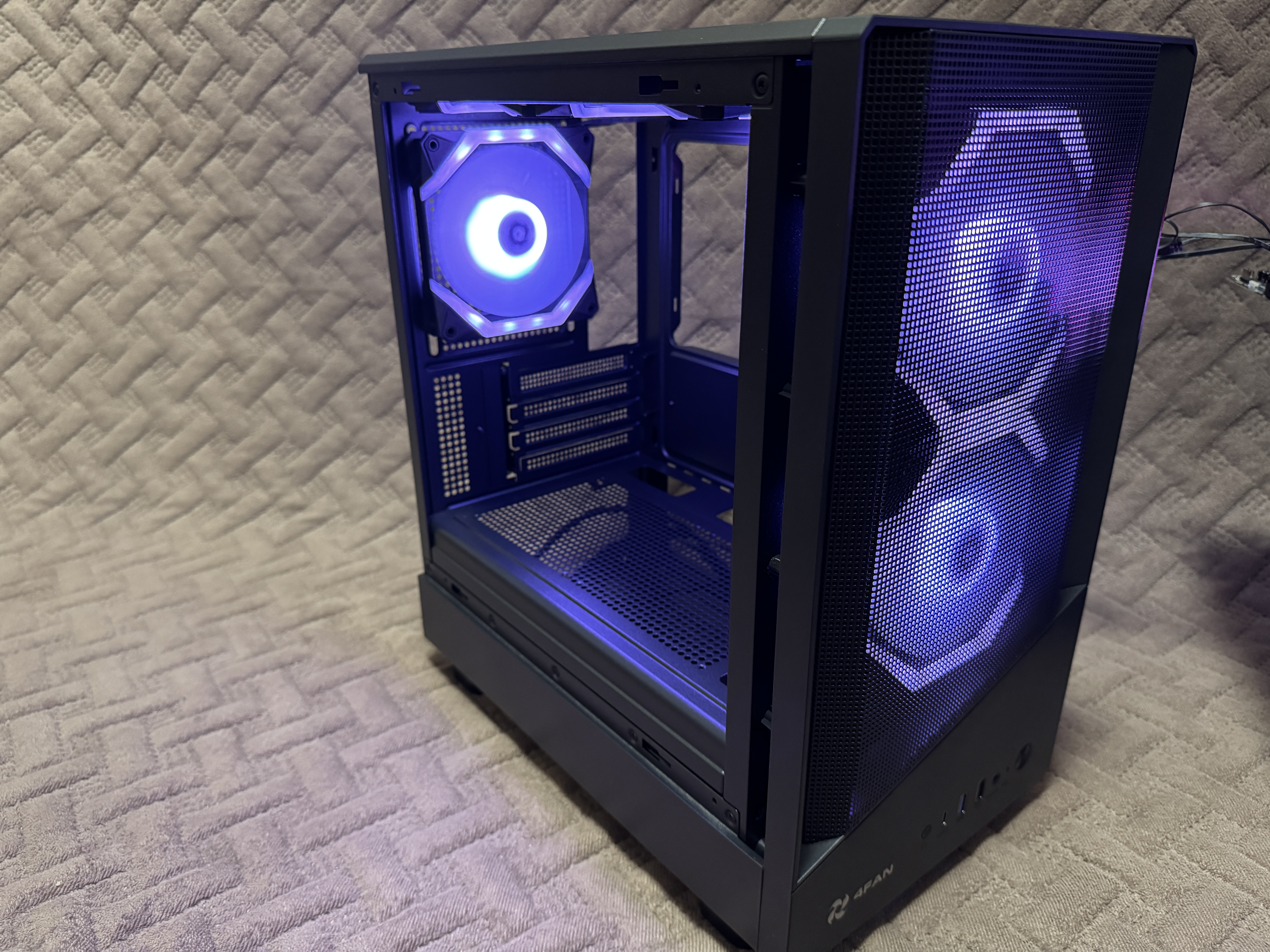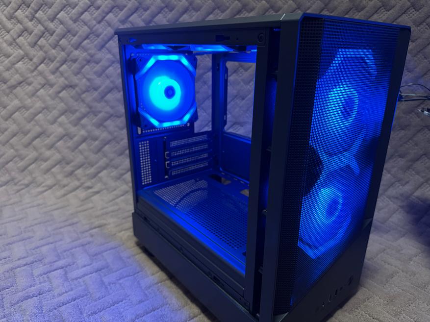 Корпус это первоначальный компонент на который смотрит пользователь во время покупки всех комплектующих. В обзоре мы рассмотрим недорогой игровой корпус 4FAN Indigon с 5 вентиляторами для создания хорошего воздушного потока для охлаждения всех внутренних компонентов. Корпус выполнен в типоразмере Mini-Tower для компактной сборки, которая будет занимать минимальное количество места на рабочем столе. А чтобы наслаждаться внутренней красотой, имеется боковая панель, которая выполнена из закаленного стекла.