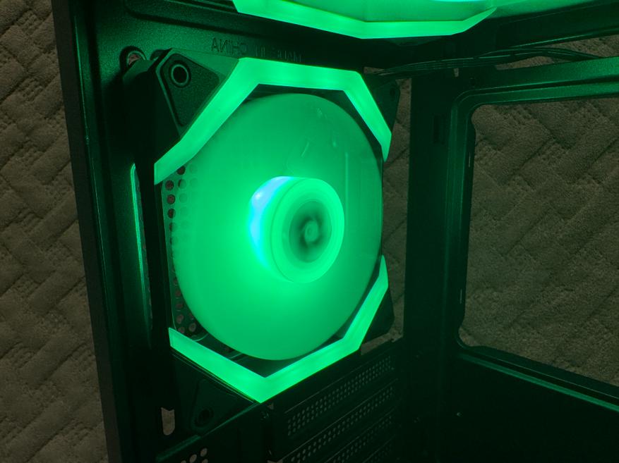 Общая подсветка всего корпуса. Вентиляторы без проблем синхронизируются с программным обеспечением материнской платы и со всеми комплектующими.
