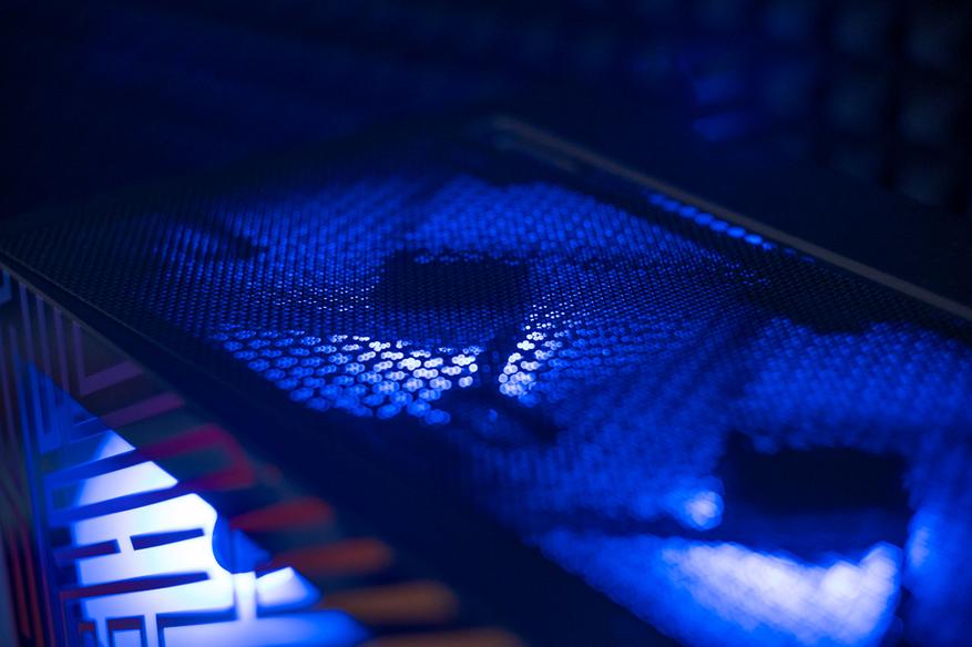Cпереди корпуса установлено каленое стекло, вместе с боковым они дают обширный вид на внутренние компоненты.