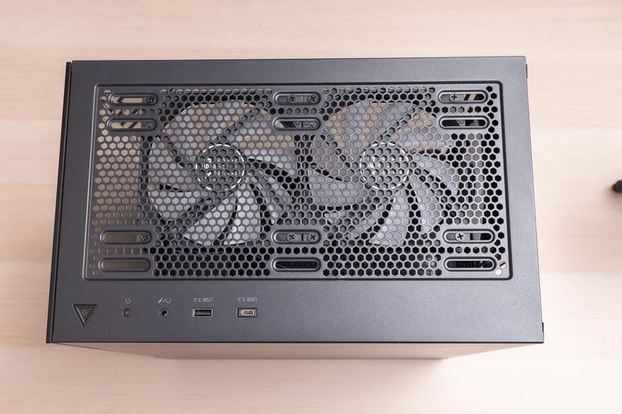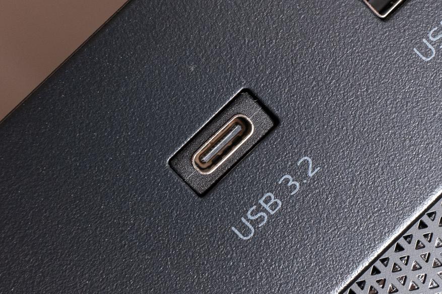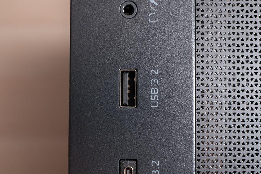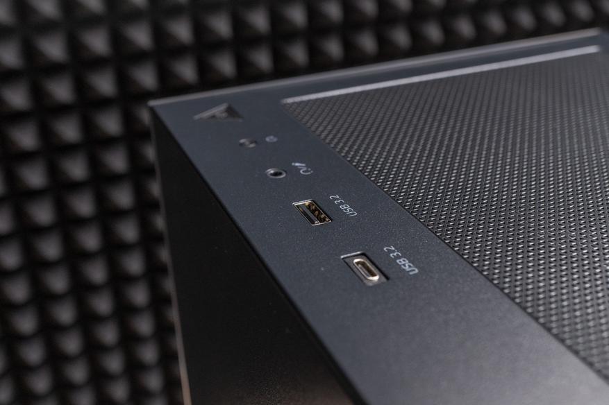 Порты «передней панели» расположены сверху, там же можно найти кнопку перезагрузки и запуска пк. Аудиоджек совмещенный, он поддерживает гарнитуры со встроенным микрофоном. Что примечательно, все USB порты стандарта 3.2