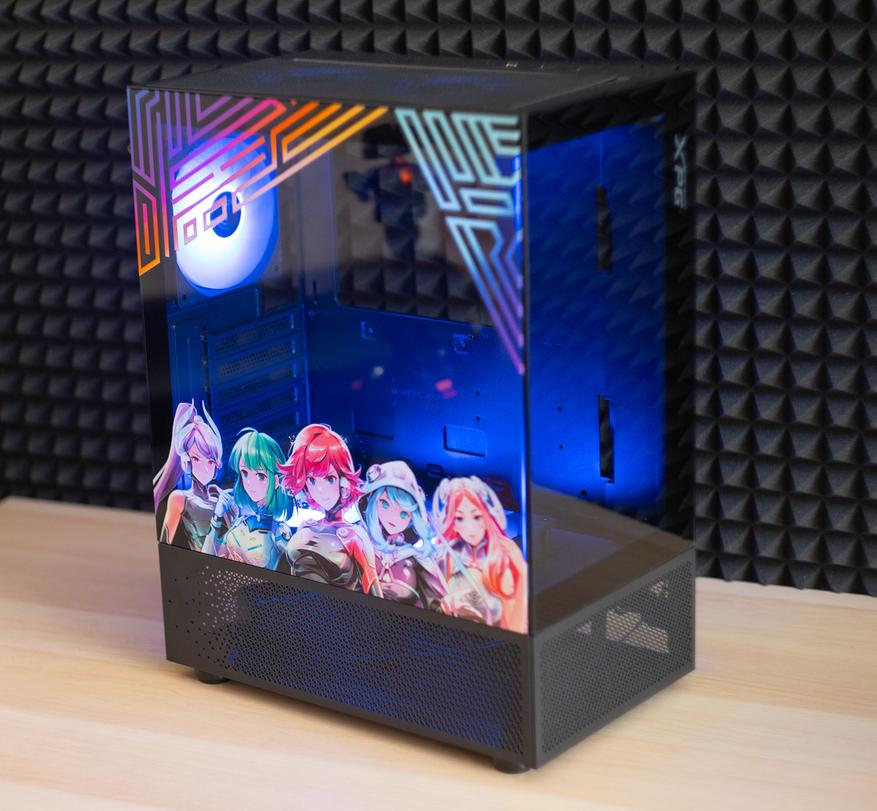 В моем же случае на стекле можно увидеть принт с аниме девочками, одна из которых — фирменный персонаж Mera от xpg, в магазине можно купить только обычные корпуса без такого принта, а для его получения, придется взять готовый пк -ARDOR GAMING GEAR AX002.