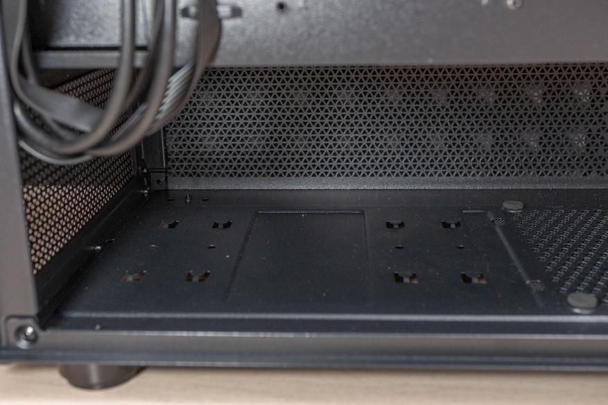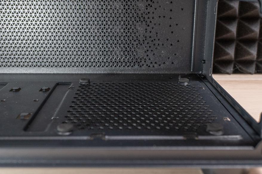Что интересно так это сетки снизу корпуса. По задумке дизайнеров, вентиляторы на дне корпуса должны подавать воздух из зоны бп прямо к видеокарте, а дабы не отнимать воздух у бп, передняя и боковая стенки получили перфорацию.