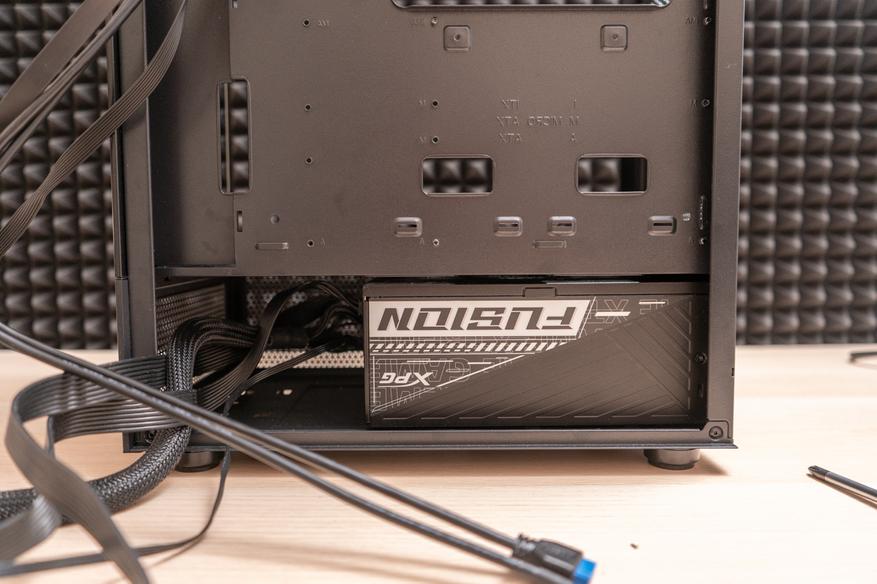 Вторым этапом была установка бп. Официально корпус поддерживает блоки с длинной до 18см, но на практике с небольшим трудом удалось таки поставить XPG Fusion с длинной в 21см!