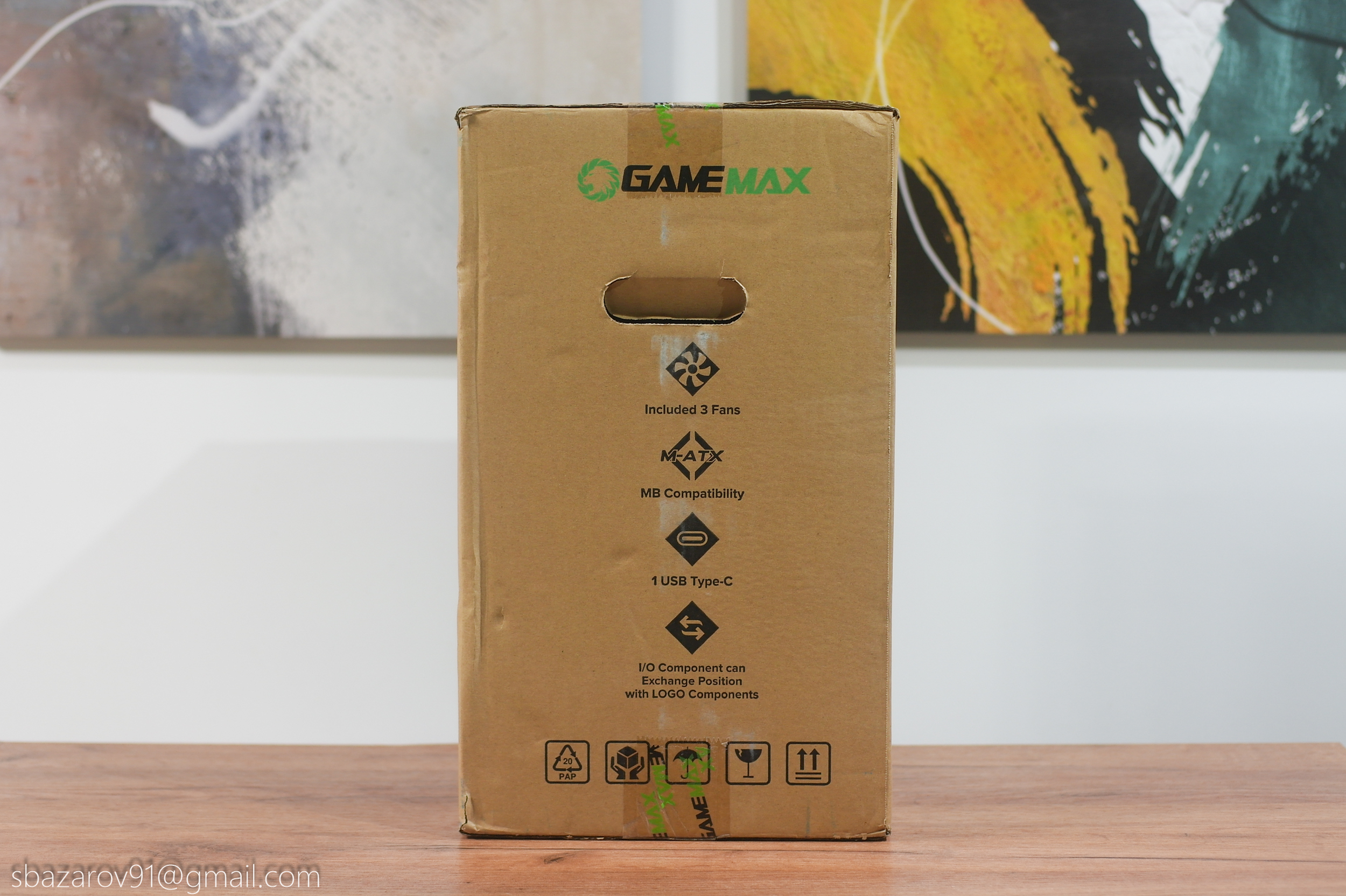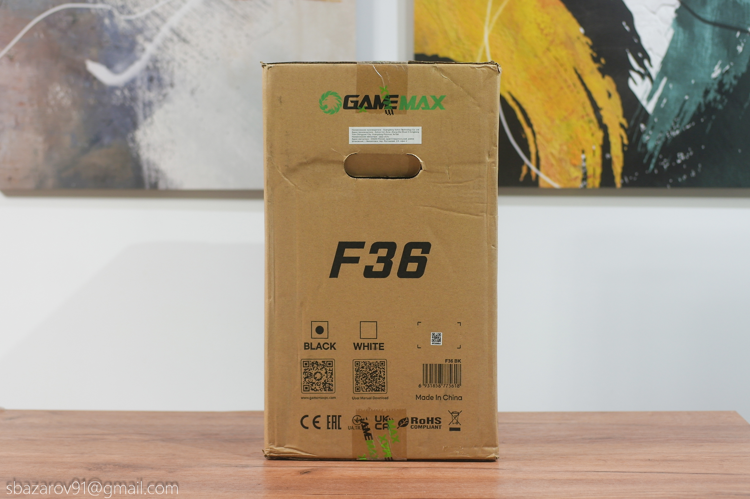 Несмотря на компактные размеры, корпус GameMax F36 поставляется в солидной коробке, сравнимой с упаковкой полноразмерных моделей Full-Tower. Для удобной транспортировки предусмотрены две прочные ручки. Покупателям доступна классическая цветовая гамма: строгий черный и элегантный белый.