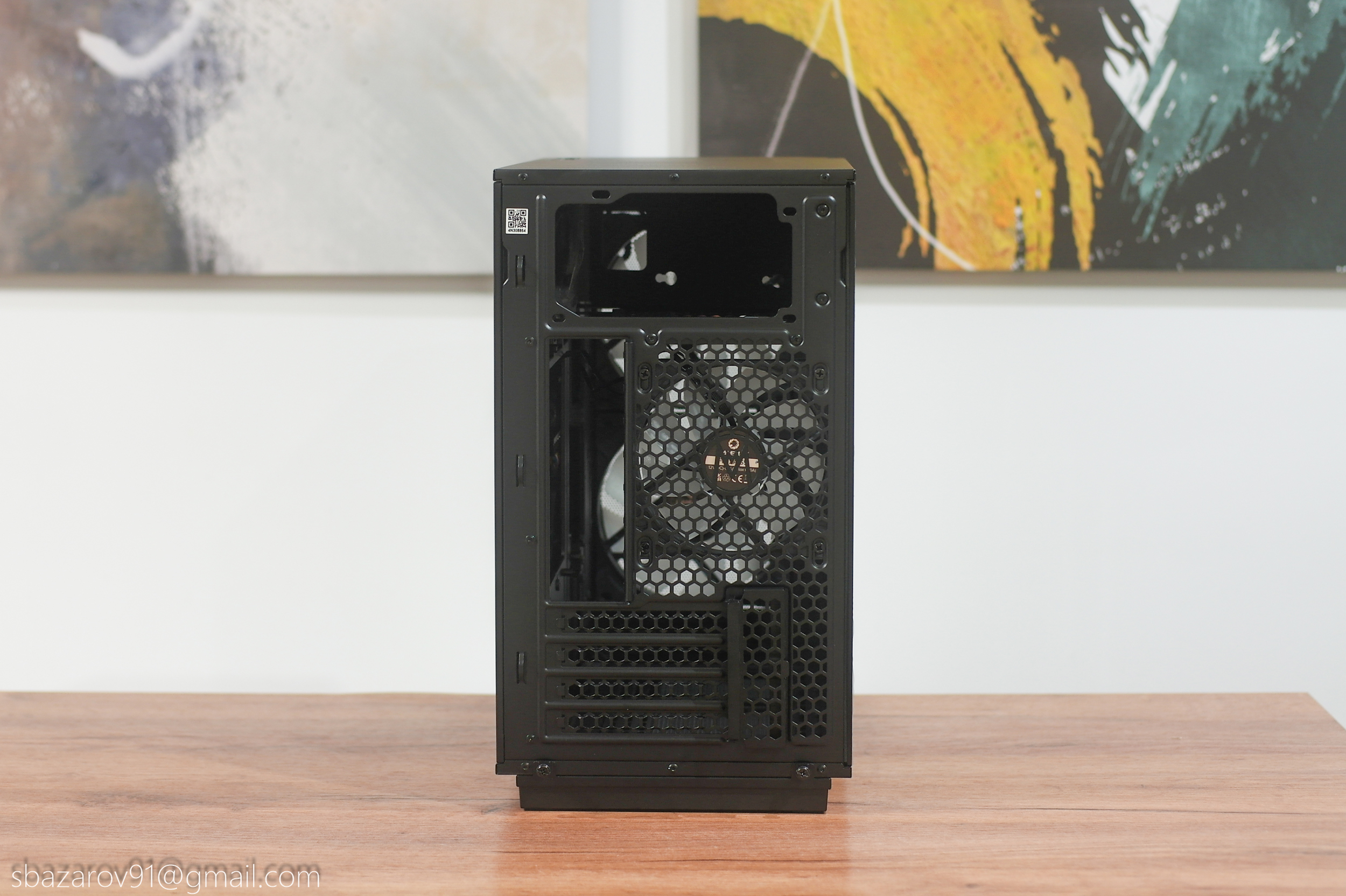 Под отсеком для БП установлен дополнительный 120-миллиметровый вентилятор (маркировка FN12A-S5, характеристики: 800-1600 об/мин, воздушный поток до 41 CFM, статическое давление 1,83 мм водяного столба, уровень шума 30 дБ). Как и в случае в фронтальными кулерами этот также работает бесшумно.