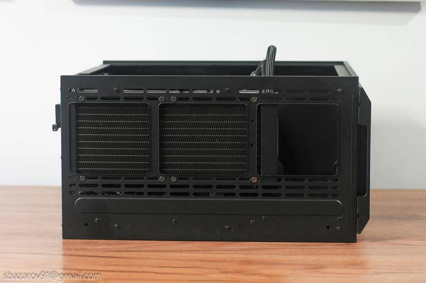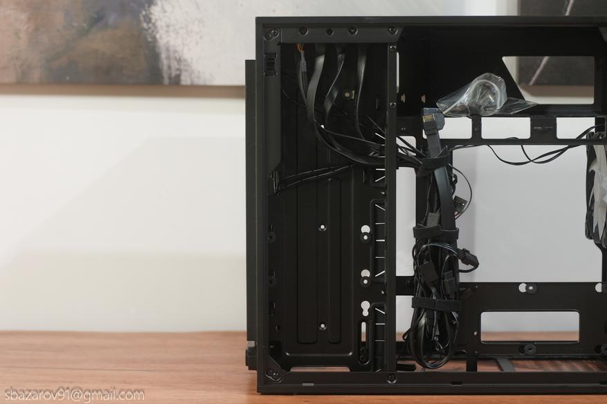 Данный корпус поддерживает реверсивные материнские платы (ASUS BTF, MSI Project ZERO) с подключением периферии на задней панели, благодаря 20-миллиметровому зазору между основанием и задней стенкой.