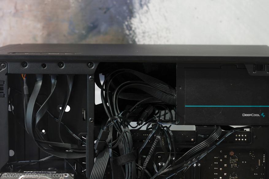 Для блока питания предусмотрена отдельная секция с диагональным вырезом для удобного размещения кабелей питания. Поддерживаются блоки питания стандарта ATX длиной до 170 мм.