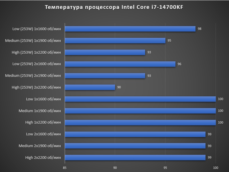 Далее я провёл уже тесты в различных режимах работы штатного переключателя, который регулирует максимальную частоту вращения вентиляторов. У переключателя есть три положения: High, Medium, Low.