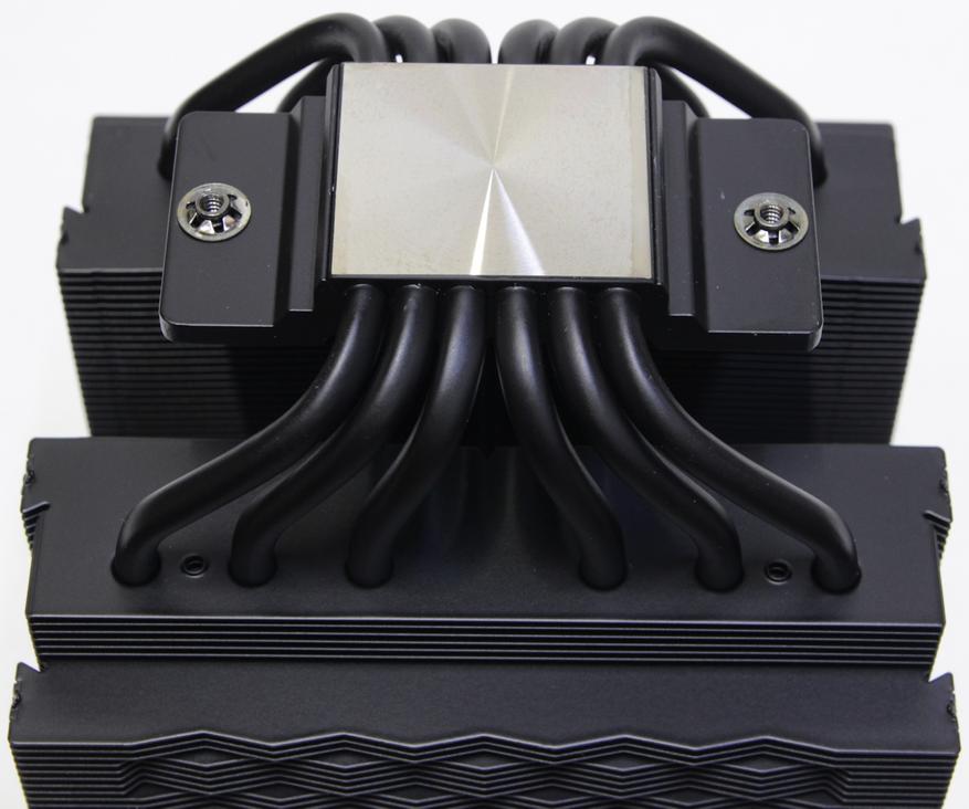 Согласно спецификации, размеры кулера составляют 130 х 142,5 х 157,5 мм. Отдельно радиатор весит 925 г. Другими словами — это достаточно массивное устройство. Конструкция похожа на другие двухбашенные кулеры. Здесь используется шесть медных тепловых трубок диаметром 6 мм.