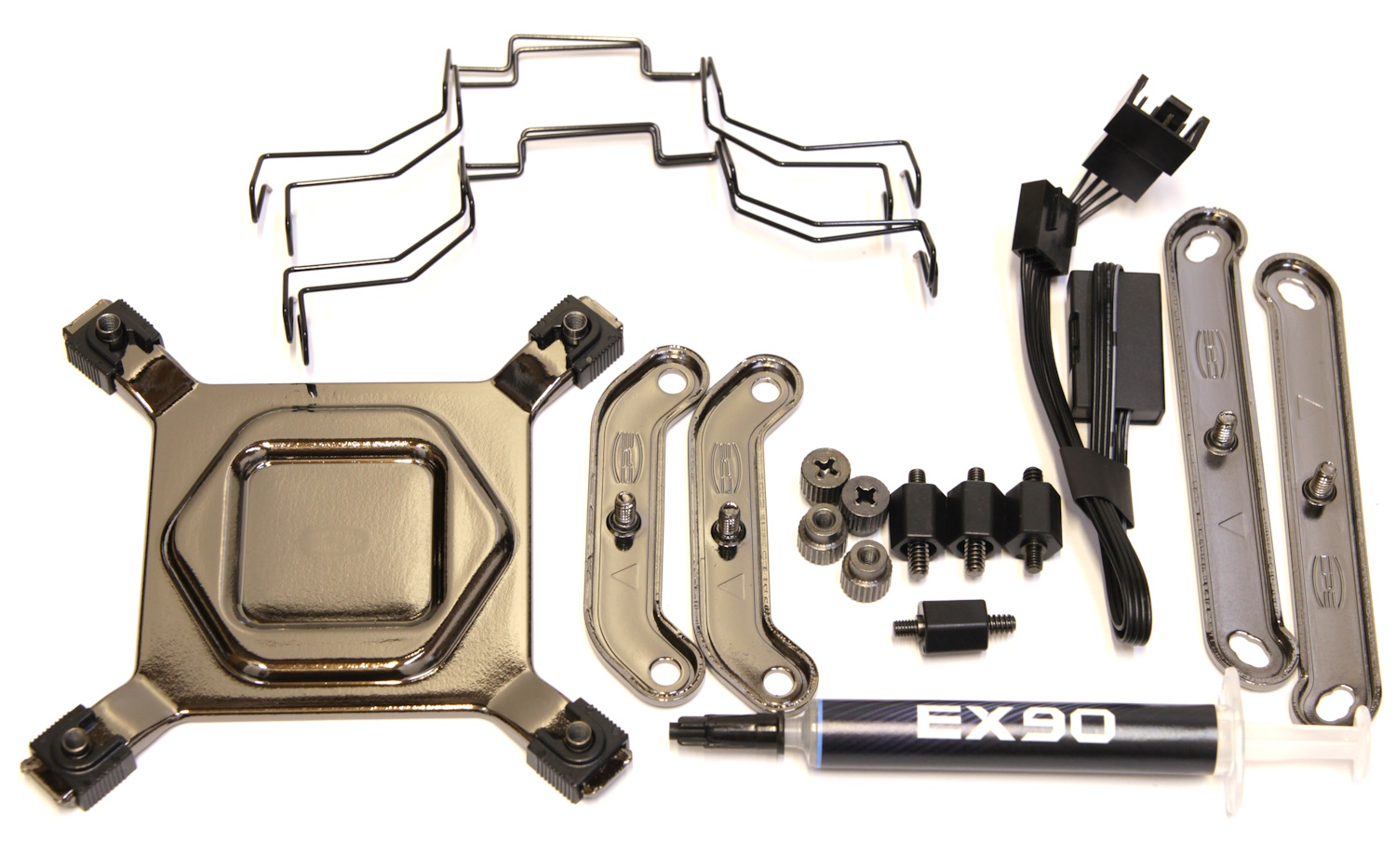 Установка осуществляется просто. Начнём с того, что она подробно описана в инструкции. Для платформы Intel в первую очередь необходимо разместить стальную пластину и отрегулировать положение втулок так, чтобы они попадали в отверстия на материнской плате. Затем уже вкручиваются адаптеры, устанавливаются перекладины, которые потом фиксируются гайками. Все эти процедуры можно осуществлять без вспомогательных инструментов, а вот для фиксации винтов с пружинками на перекладине радиатора уже понадобится крестообразная отвёртка. Причём сначала нужно будет зафиксировать радиатор и только потом установить вентилятор между секциями, иначе доступа к винтам не будет.