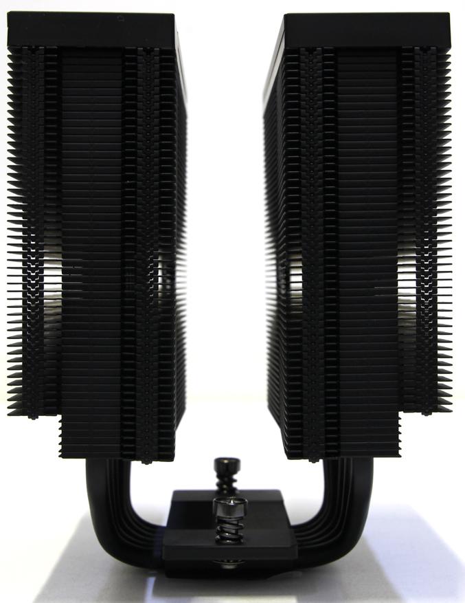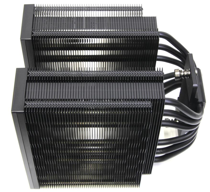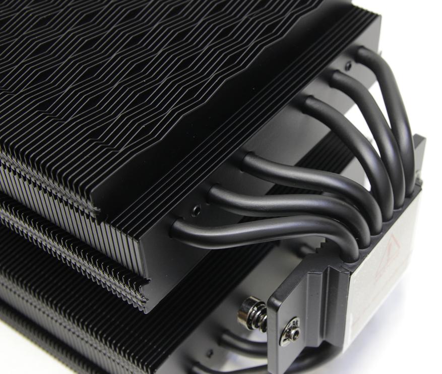 Всего здесь 53 пластины, но 48 из них крупные, а 5 нижних уменьшены для лучшей совместимости с модулями оперативной памяти. Толщина пластин около 0,4 мм, а расстояние между ними приблизительно 1,7 мм. С внутренней стороны пластины ровные, а снаружи они образуют узор. Это якобы необходимо для снижения шума и лучшего прохождения воздуха. Поверхность напоминает треугольные волны. Общая площадь поверхности пластин составляет приблизительно 11122 кв. см.