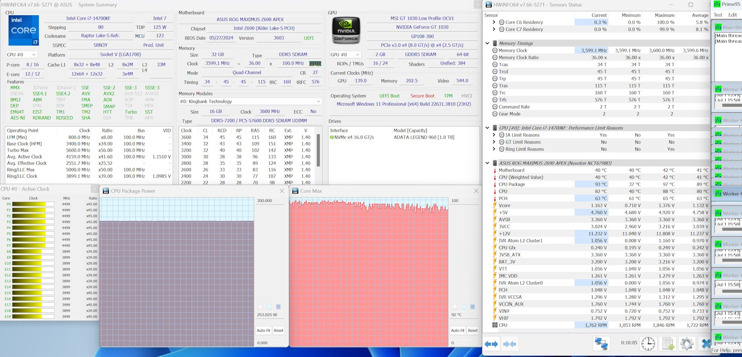 Далее я использовал ограничение рекомендованное Intel, которое установил в BIOS. Потребляемая мощность фиксируется на отметке 253Вт.