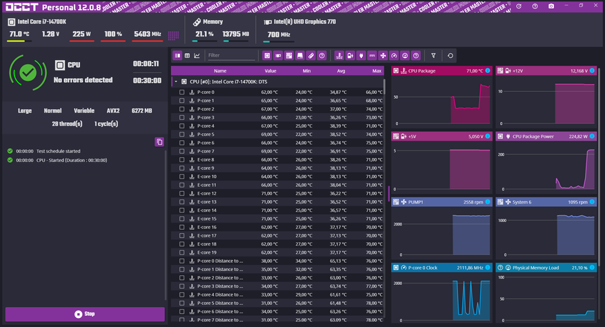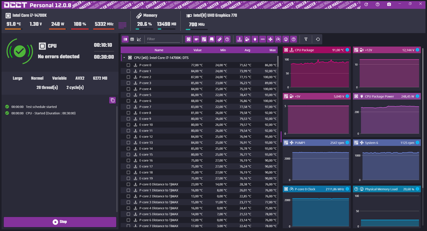 Тестировать ID-COOLING SL360 XE будем на открытом стенде, в помещении со средней температурой в 24-25 градусов по Цельсию в программе OCCT.
